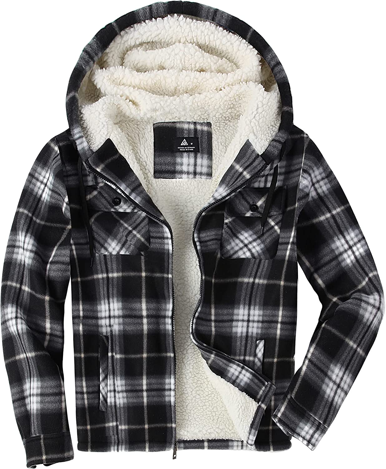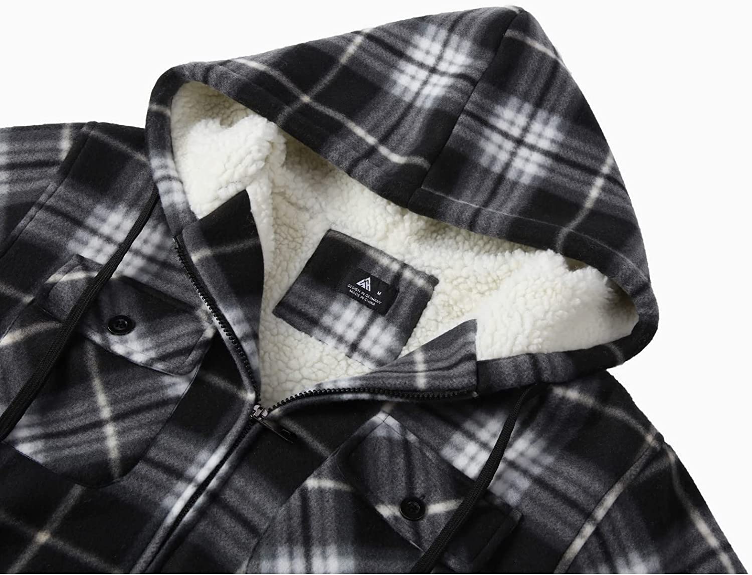 SCODI Men's Flannel Shirt Jacket Fleece Lined Plaid Coat Full Zip Up Hoodie Winter Outwear