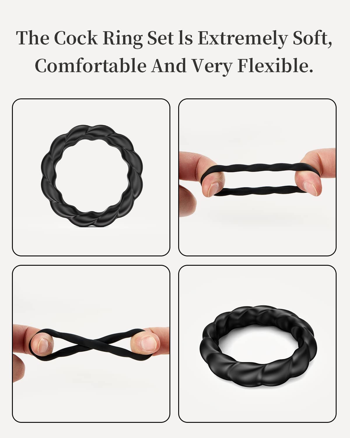 Silicone Penis Ring Set, Cock Rings for Sex Men Erectiom Ring / Premium Stretch Longer Harder Stronger Erection Soft Silicone Penis Ring Cock Ring Set for Men Or Couples