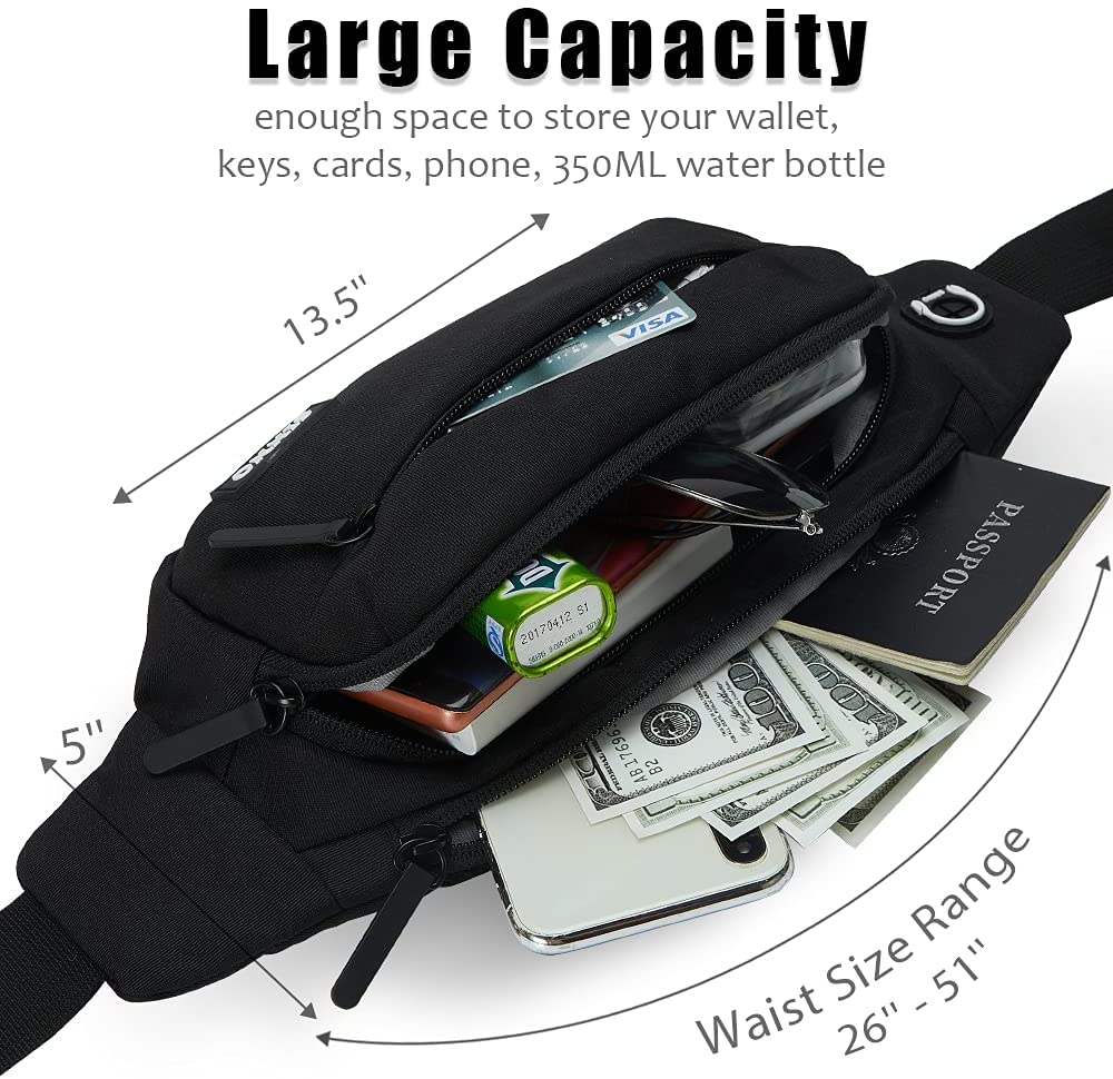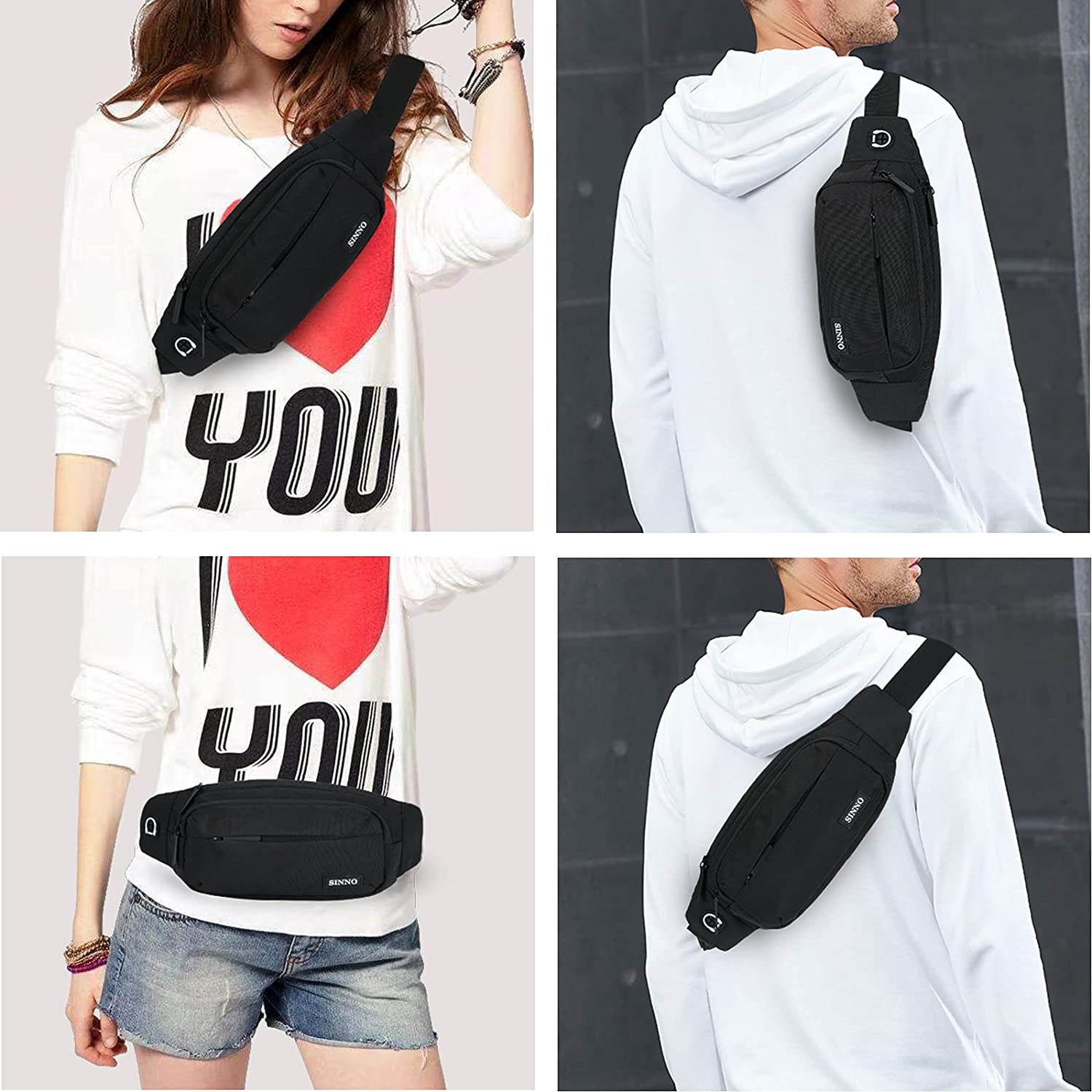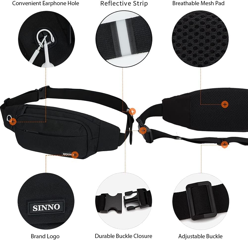 SINNO Large Fanny Pack With 4-Zipper Pockets for Running Hiking Travel Workout Dog Walking Outdoors Sport Fishing Waist Pack Bag