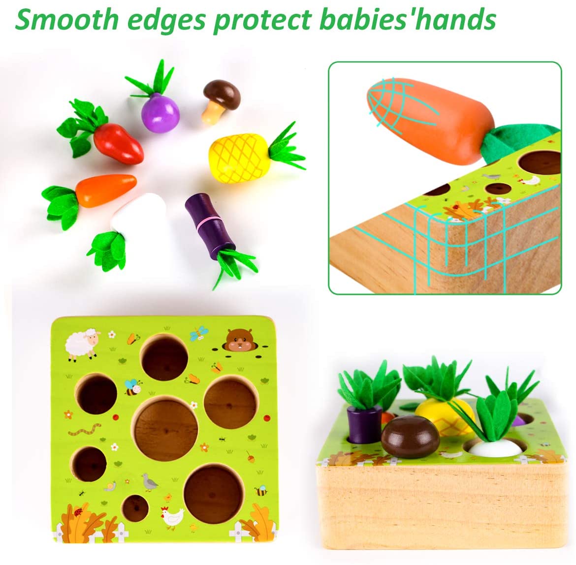 SKYFIELD Wooden Farm Harvest Game Montessori Toy, Early Learning Toy for Boys and Girls 1 2 3 Years Old, Shape Sorting Educational Toy with 7 Sizes Vegetable or Fruit, Gift for Toddlers 1-3