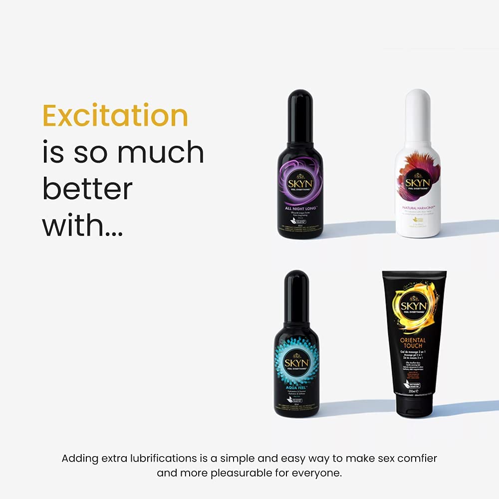 SKYN Excitation combines a wave design texture with intensely raised dots on the most sensitive areas. Together with a long-lasting, ultra-smooth cooling lubricant, it maximizes stimulation and pleasure for both partners. Excite your senses. Intensify your intimacy.