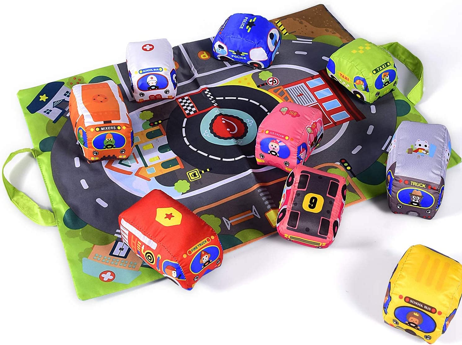 Soft Car Toy Set with Play Mat for 1 Year Old Baby,Toddlers,Boys and Girls ( 9 Vehicle and a Play mat/Storage Bag) | Baby Toys 12-18 Months| Toys for 1 Year Old boy