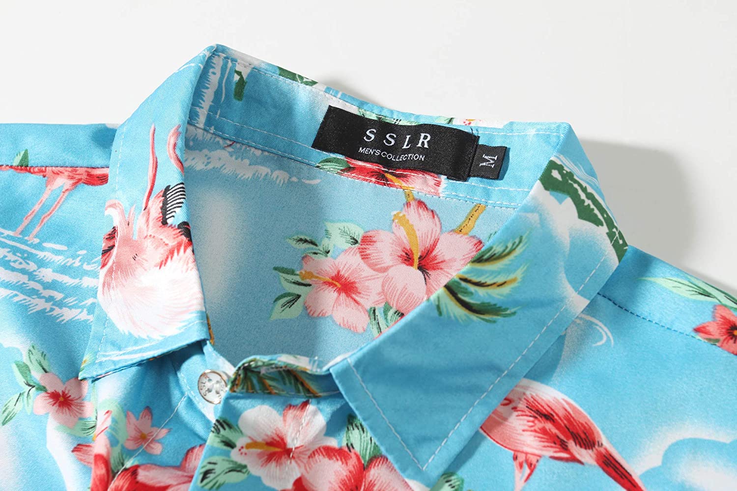 SSLR Mens Hawaiian Shirt Flamingos Casual Short Sleeve Button Down Shirts Aloha Shirt