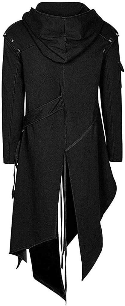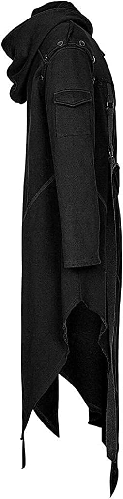 Stoota SINHE Men's Vintage Zipper Up Asymmetrical Hoodie Jacket, Irregular LonglineRetro Punk Style Party Outwear Coat