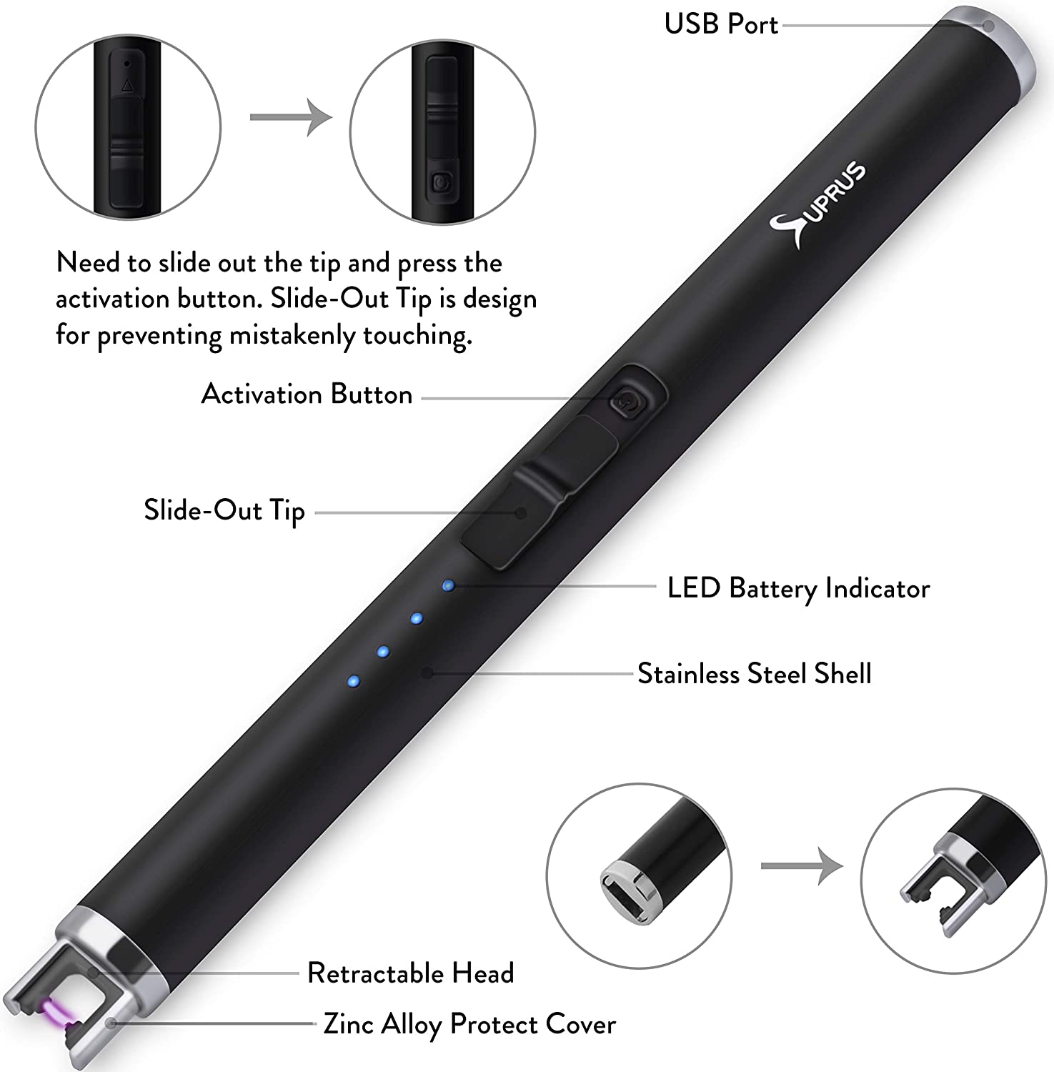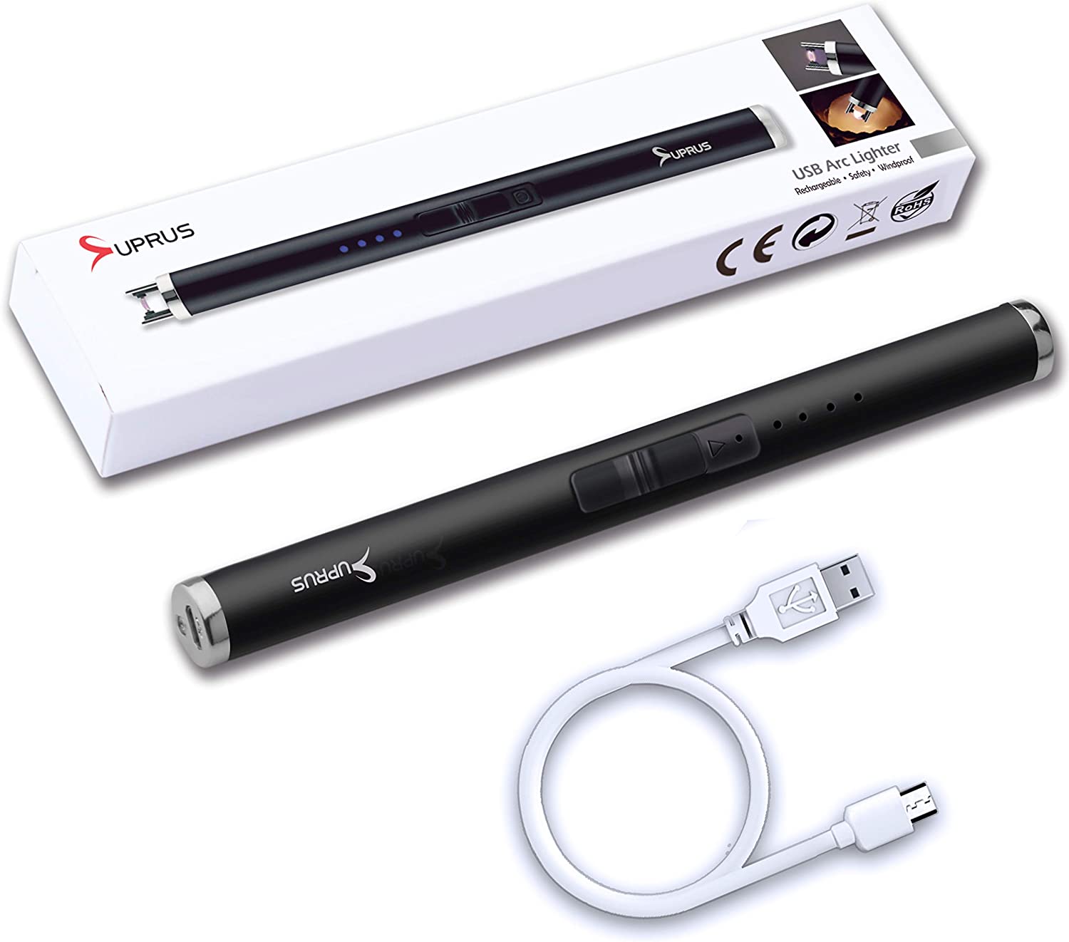 SUPRUS Lighter Electric Lighter Candle Lighter USB Lighter with Upgraded LED Battery Display Safety Switch Rechargeable Flameless Plasma Windproof Pocket Size for Candle Cooking BBQs Fireworks