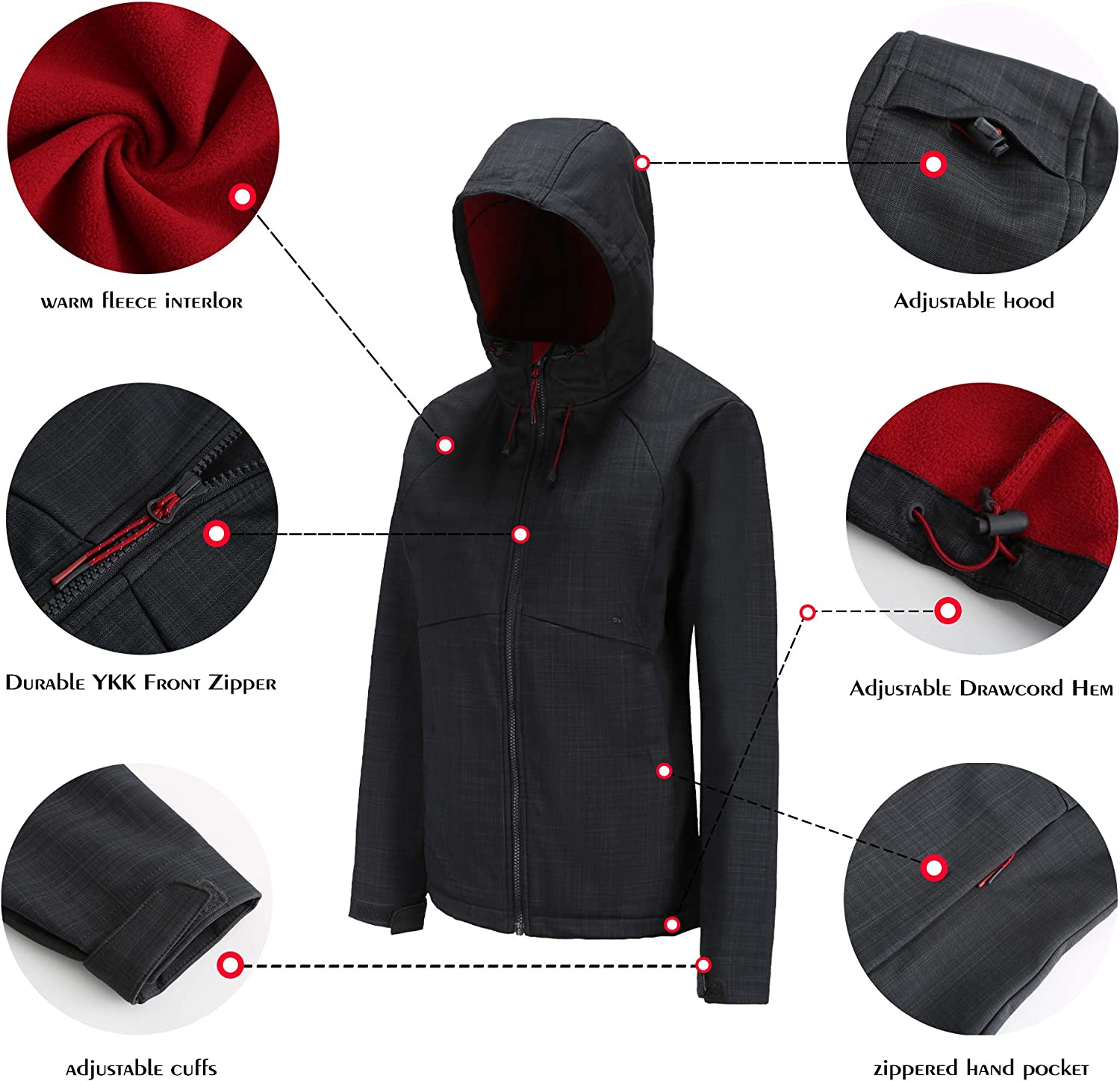 svacuam Women's Fleece Lined Softshell Waterproof Jacket Lightweight Anorak Hiking Coat