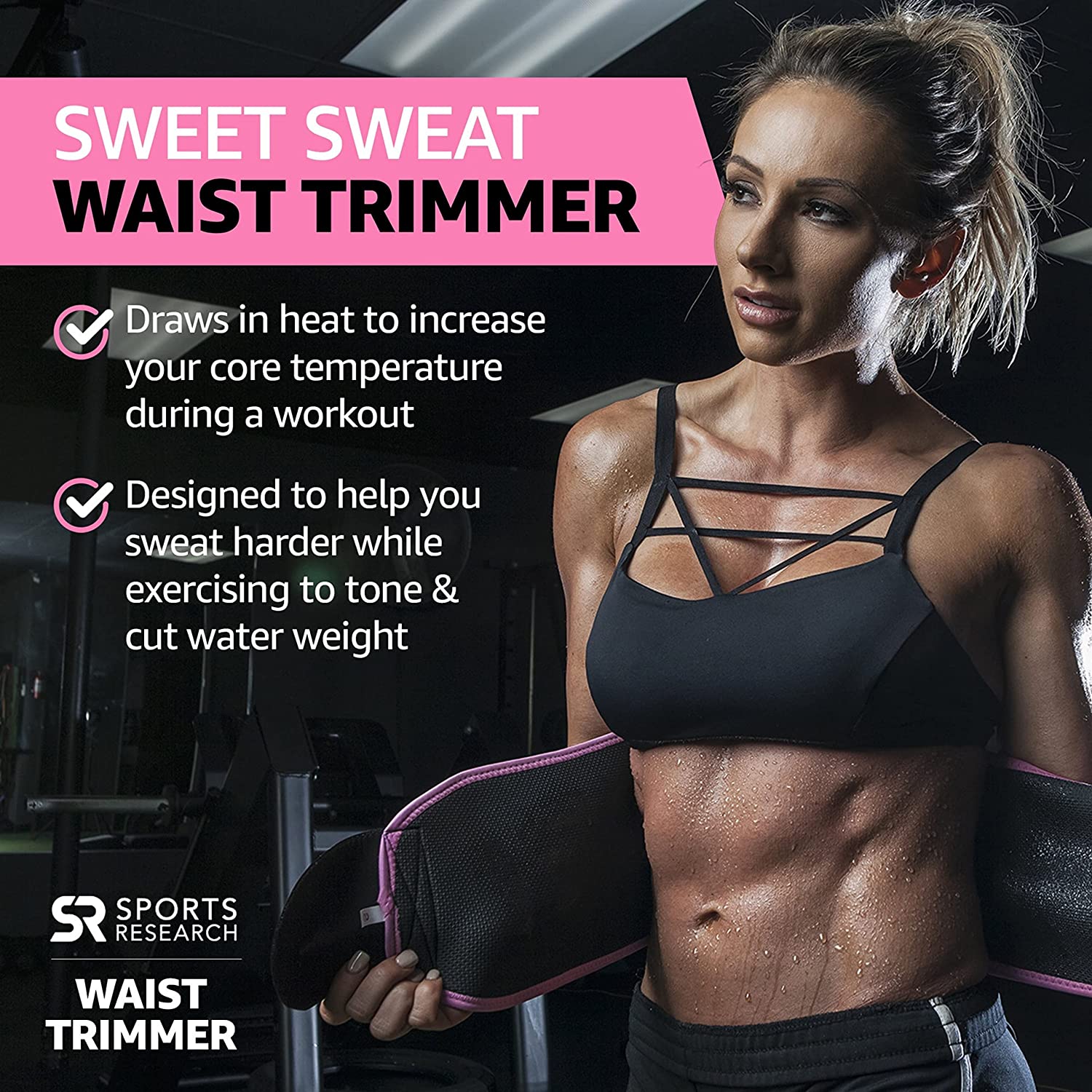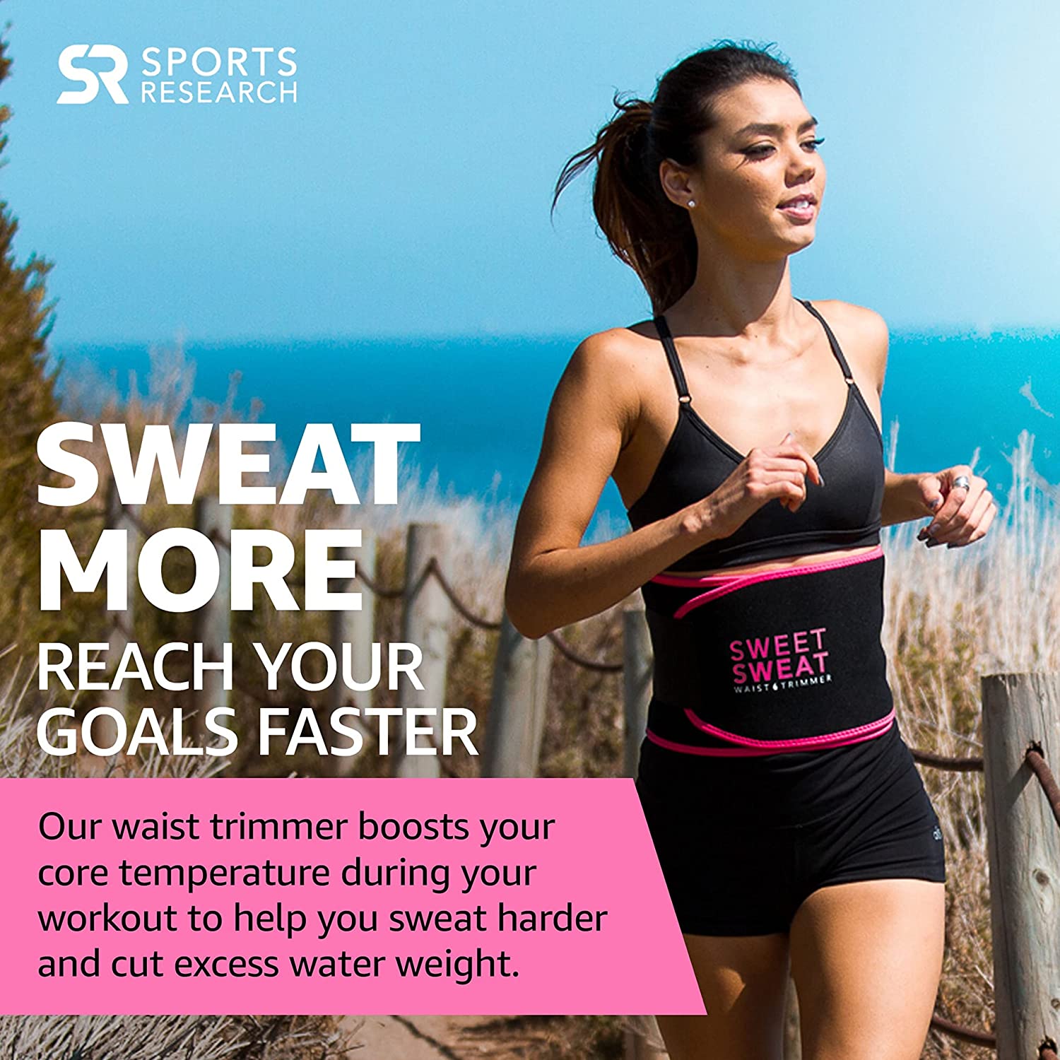 ¡Es Hora de Sudar! Haga que sus entrenamientos sean más efectivos. Obtenga más de sus sesiones con la faja clásica, contorneadora y flexible de Sweet Sweat. Nuestra faja se ajusta a la forma natural y tamaño de su cuerpo. Diseñada con neopreno grueso que ayuda a aumentar la temperatura central de la cintura y el abdomen. Brindándole comodidad mientras suda más y reduce el exceso de agua de su cuerpo. La faja cuenta con un interior texturizado, con neopreno de primera calidad sin látex para repeler la humedad, con un borde y forro reforzado para soporte, y velcro que facilita su uso. La faja también viene con una bolsa de malla Sweet Sweat, ideal para lavarla o transportarla mientras viaja. Disponible en varios estilos y tamaños. Descubra su talla perfecta midiendo el área más amplia de su cintura. Quiere elevar su entrenamiento aún más? Combine la faja con el gel potenciador de Sweet Sweat y aproveche al máximo su próxima sesión. ¡Sude con estilo y alcance su potencial con Sports Research! Sports Research es una empresa privada motivada por la pasión hacia el fitness, el bienestar de la salud y la sanación. Creada en 1980 con el objetivo de ayudar a personas a vivir una vida mejor a través de sus productos con ingredientes respaldados y hechos para todo tipo de cuerpo. Todos nos merecemos lo mejor en nuestra búsqueda hacia una vida sana, la misión de Sports Research es ofrecer precisamente eso.