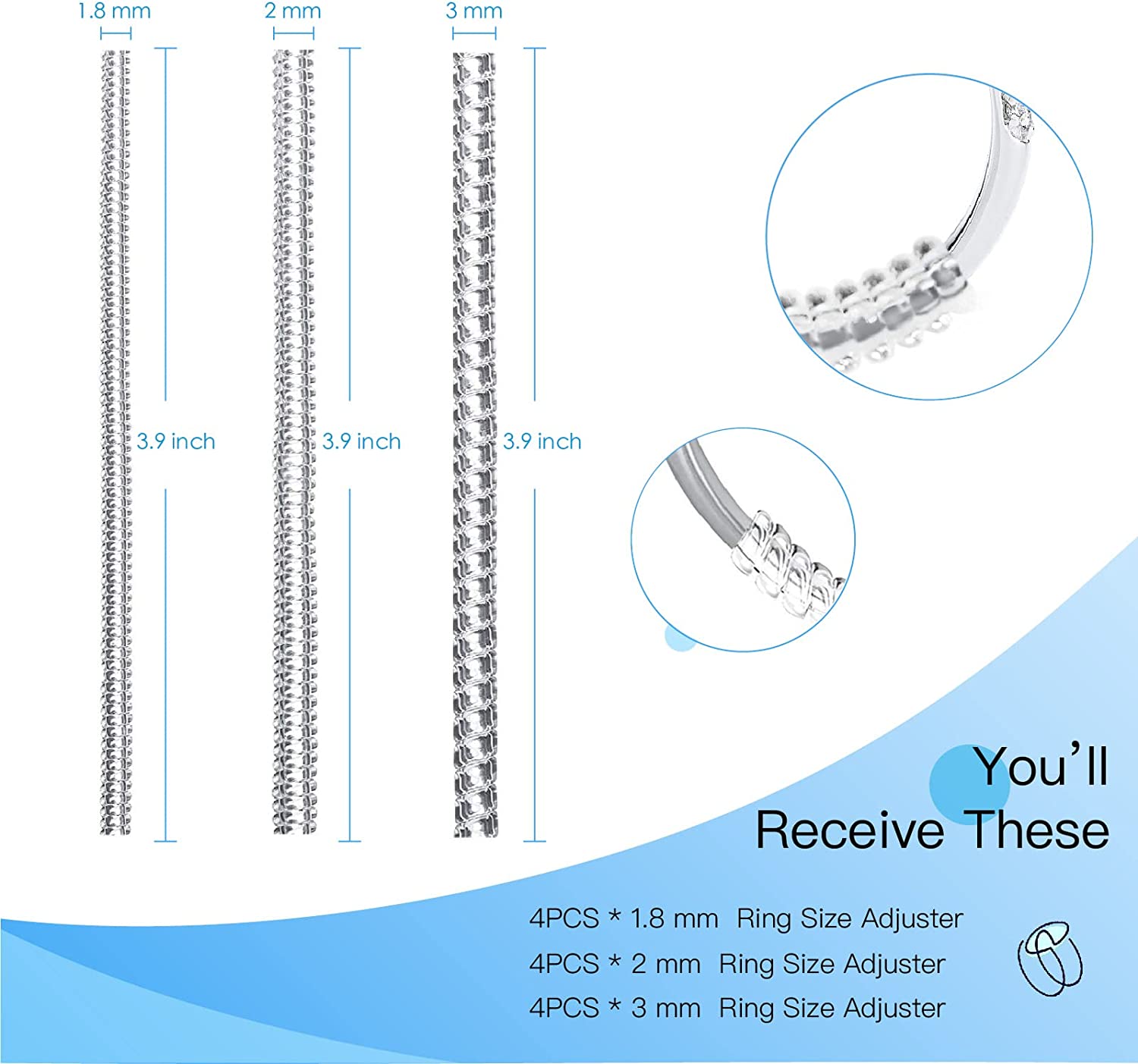 TAHEXUN Ring Size Adjuster for Loose Rings - 12-Pack Tightener Set Include 3 Sizes for Adjusting Jewelry Size and Solving Problems Easily
