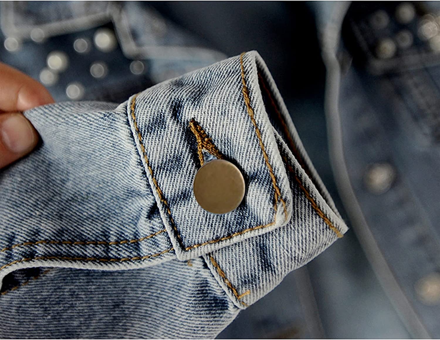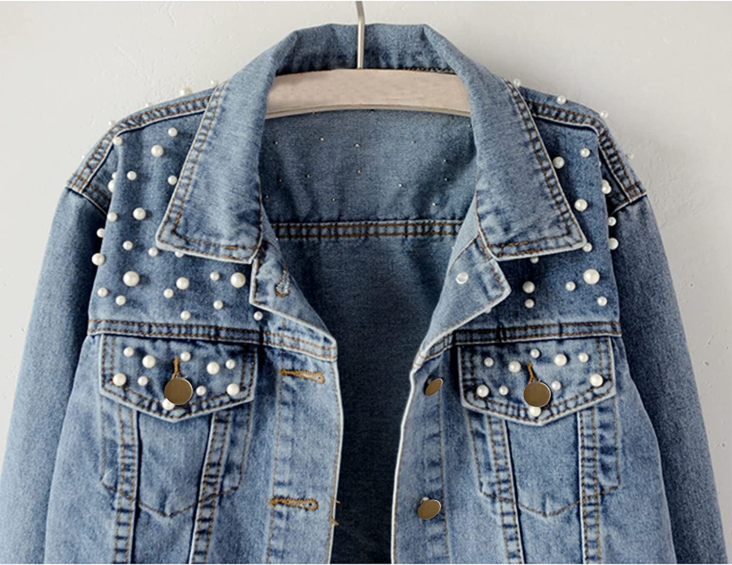 Tanming Women's Casual Embroidered Pearls Beading Denim Jacket Jean Coat