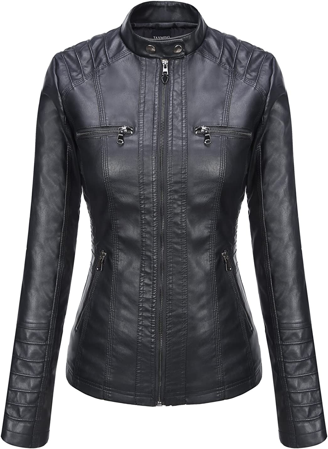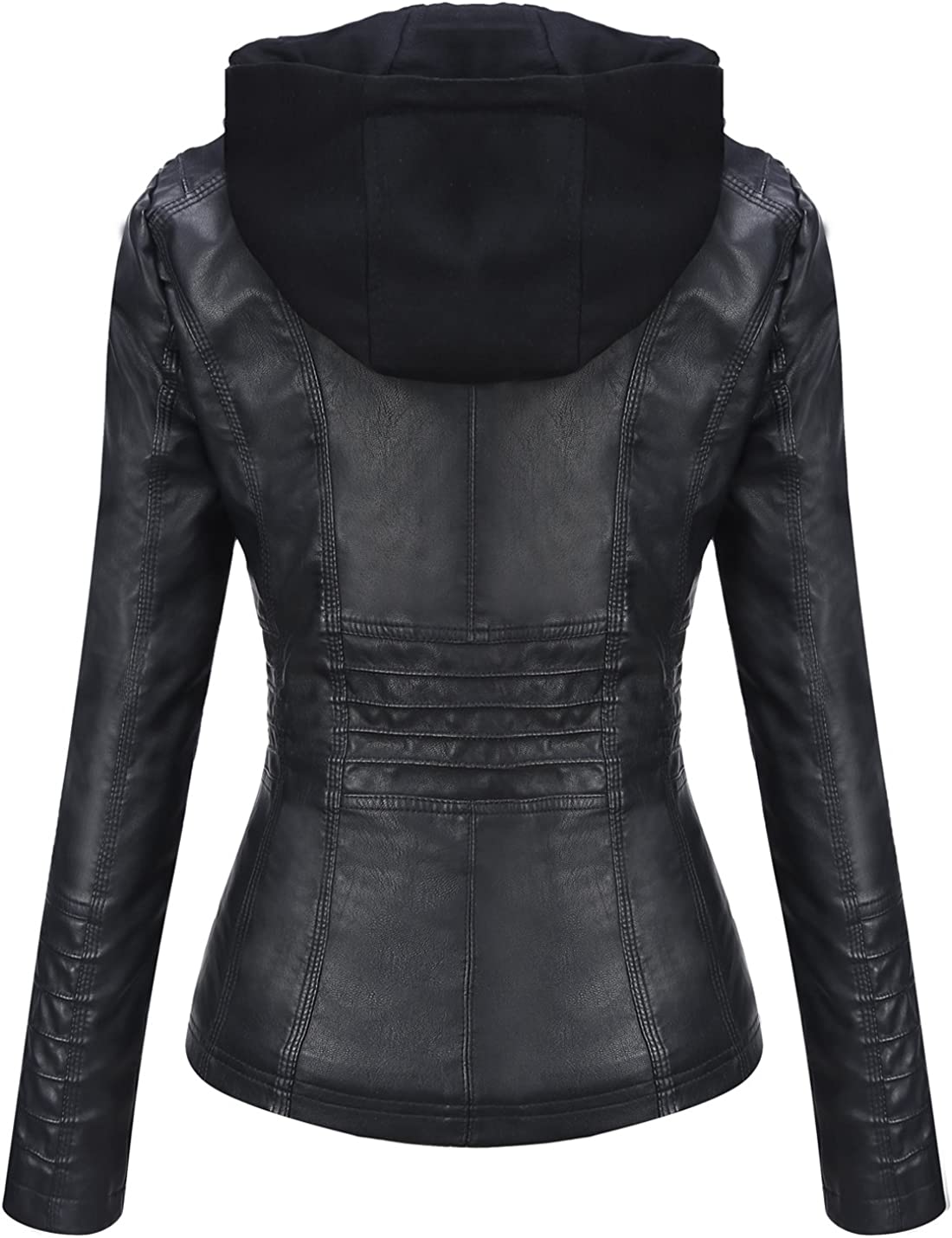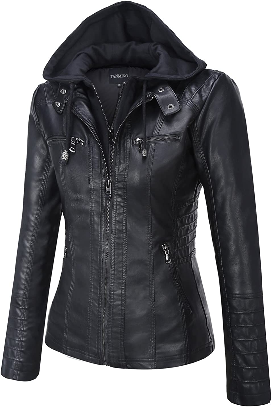Tanming Women's Removable Hooded Faux Leather Jackets