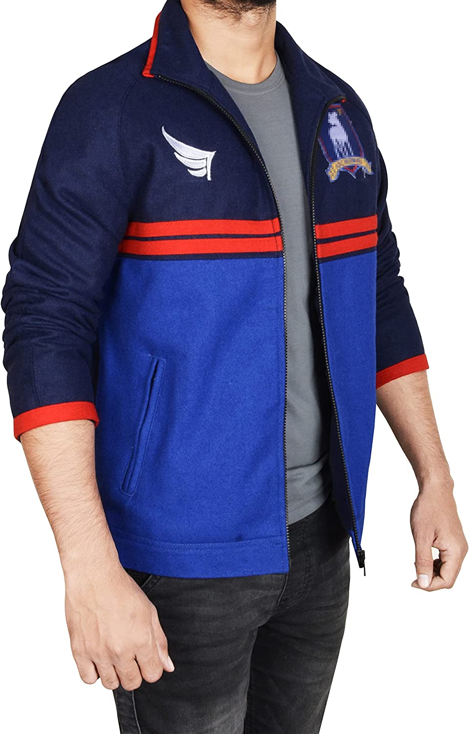 Ted Track Jacket Active and Sweater - Jason Sudeikis Sports Ted Jacket - Football Coach Blue Wool Jacket for Men