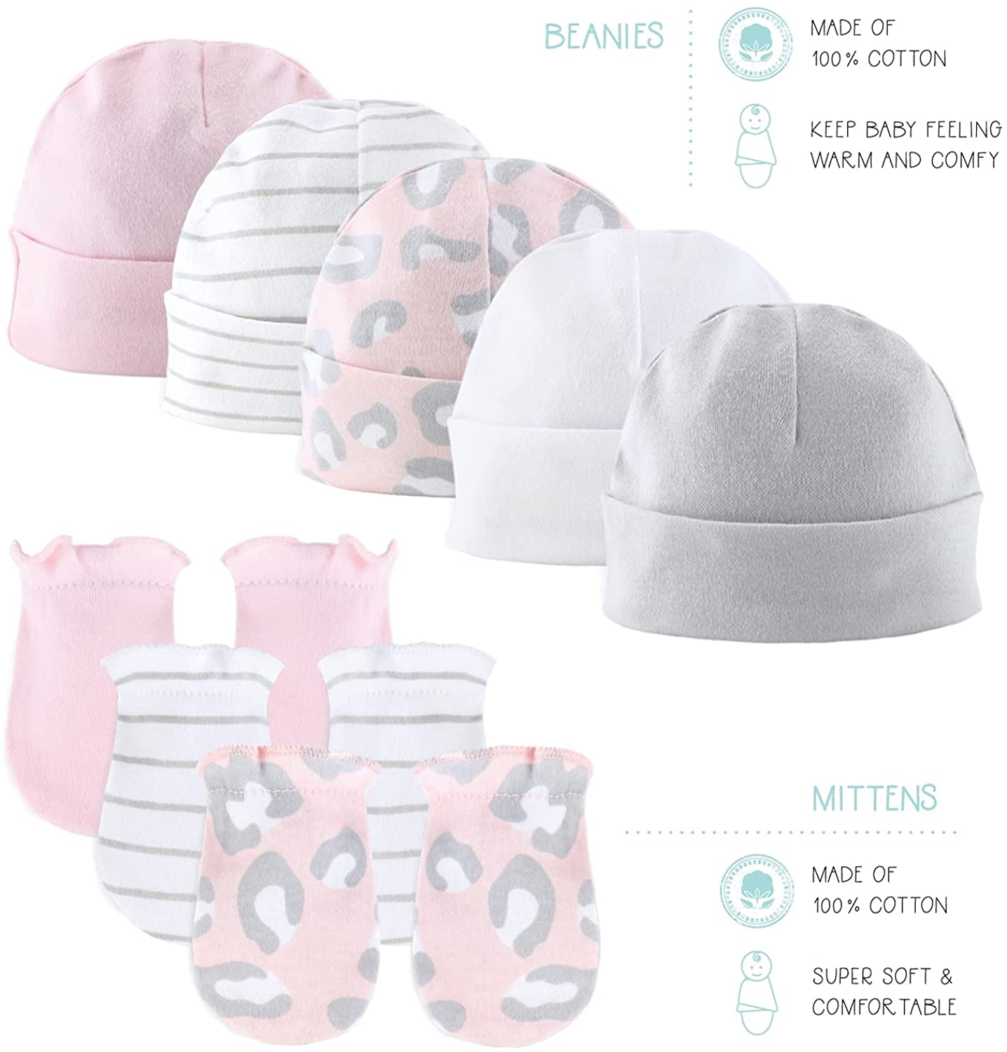 The Peanutshell Newborn Layette Gift Set for Baby Girls | 23 Piece Newborn Girl Clothes & Accessories Set | Fits Newborns to 3 Months | Pink Cheetah Animal Print