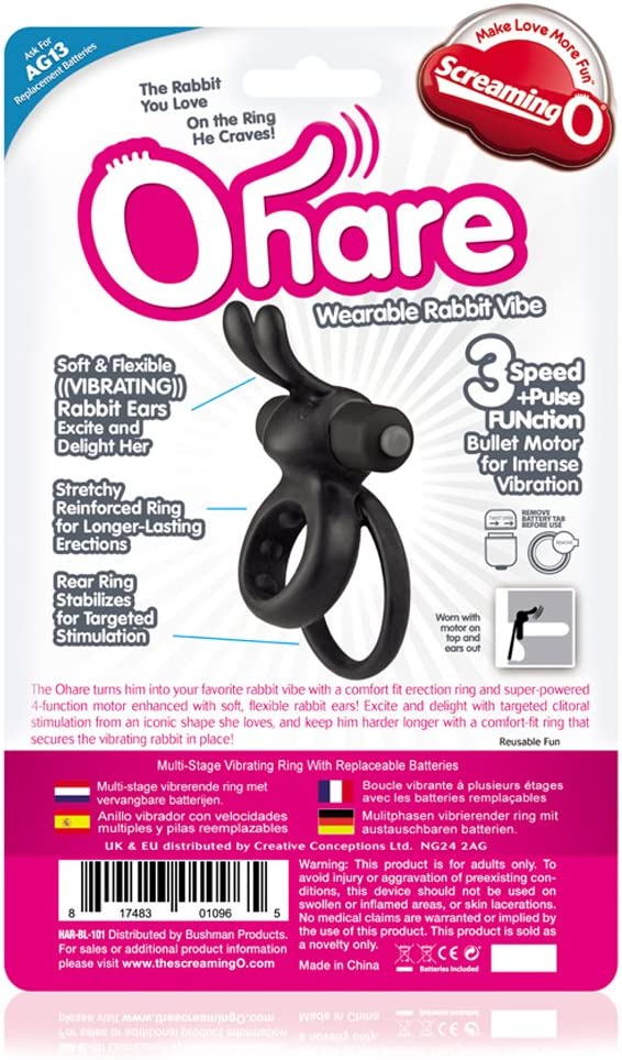 The Ohare turns him into your favorite rabbit vibe with a comfort fit erection ring and super-powered 4-function motor enhanced with soft, flexible rabbit ears. Excite and delight with targeted clitoral stimulation from an iconic shape she loves, and keep him harder longer with a comfort-fit ring that secures the vibrating rabbit in place.