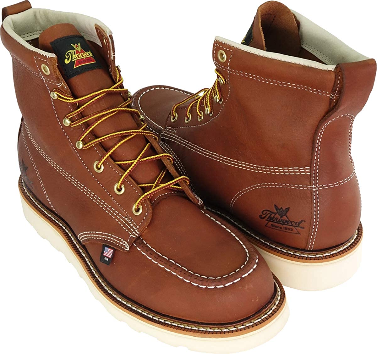 Thorogood American Heritage 6” Moc Toe Work Boots For Men - Premium Breathable Non-Safety Toe Leather Boots with Slip-Resistant MAXWear Wedge Outsole; ASTM Rated