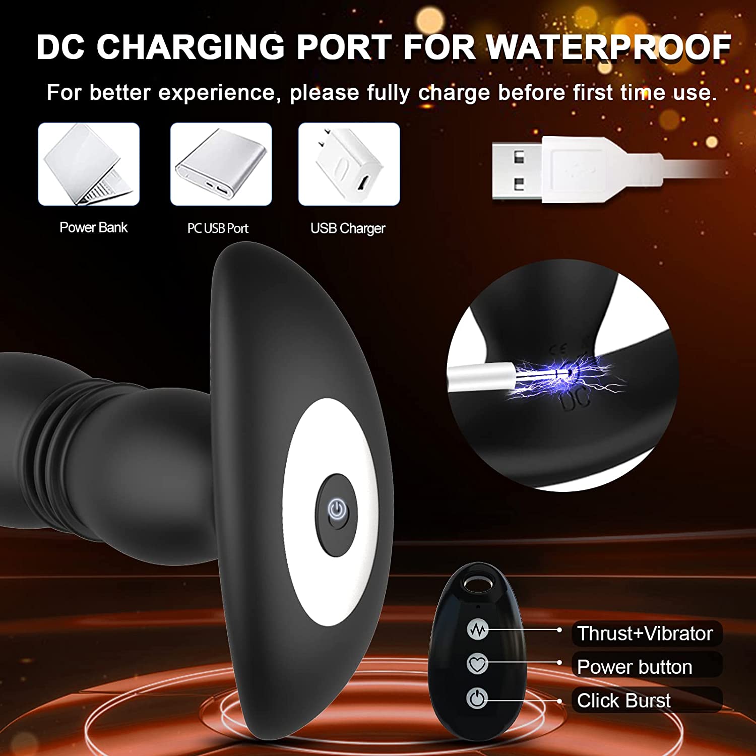 Thrusting Anal Vibrator Prostate Massager for Men Women, P Spot Vibrator Butt Plug Sex Toy with 7 Vibrations 3 Thrusts for Anal Play Masturbation, Equipped with Remote Controller for Hands-Free Play