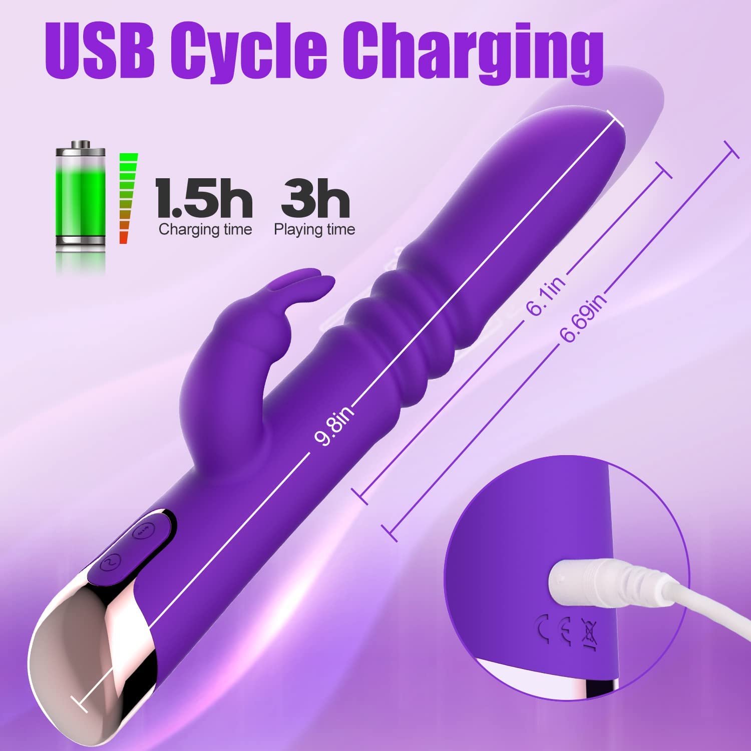 Thrusting Rabbit Vibrator Sex Toys for Women, 9.8" G-spot Vibrator with 3 Thrust & 7 Vibration Modes, Waterproof Clitoral Stimulator with Bunny Ears, Rotating Dildo Vibrator for Men, Women & Couple