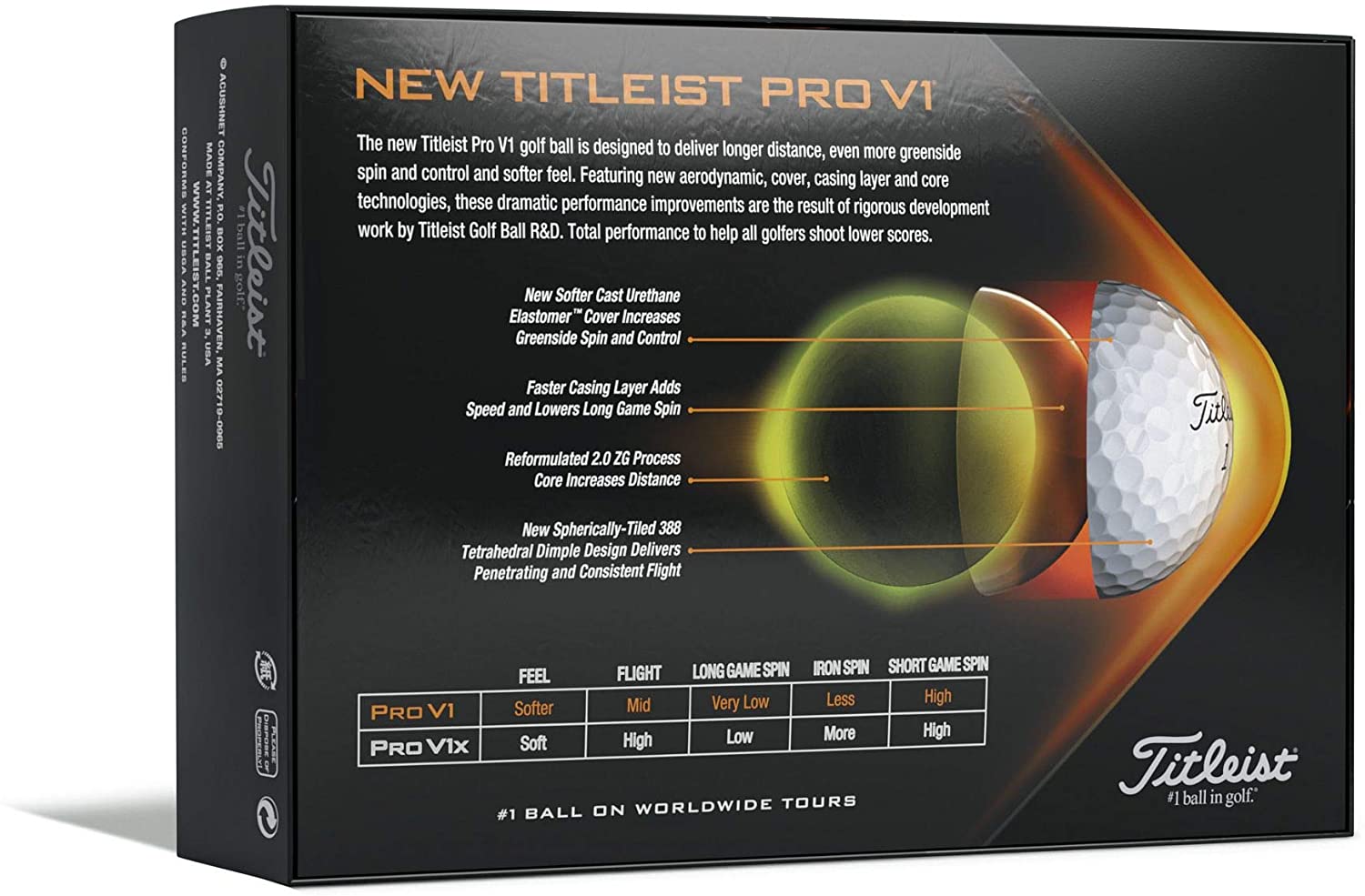 The new Titleist Pro V1 offers total performance and features longer distance, very low long game spin, penetrating flight, even more Drop-and-Stop greenside control and a softer feel.