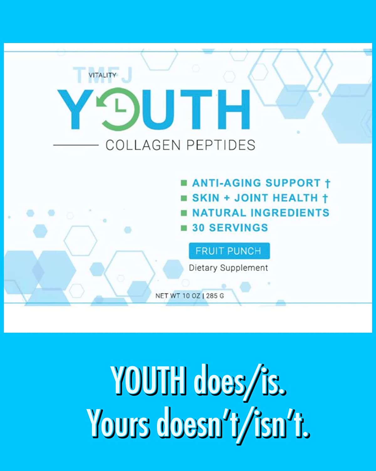 Truly the best collagen peptide blend on the market today, with ingredients proven to be anti-aging, boost metabolism, enhance joint function and decrease joint pain, balance your mood, boost hair growth, improve skin elasticity-tone-brightness, and speed up recovery. With a full amino acid panel included, YOUTH is truly geared toward the aesthetics- minded athlete or adult. There is no other collagen peptide ingredient panel like ours!