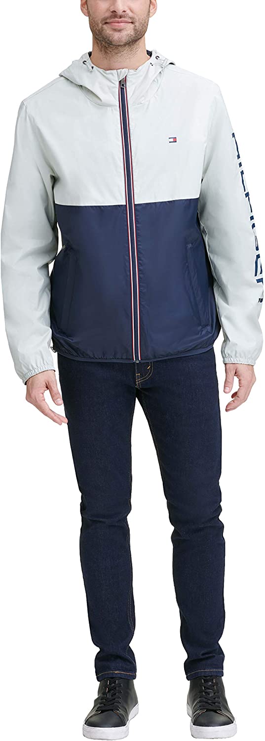Tommy Hilfiger Men's Lightweight Active Water Resistant Hooded Rain Jacket