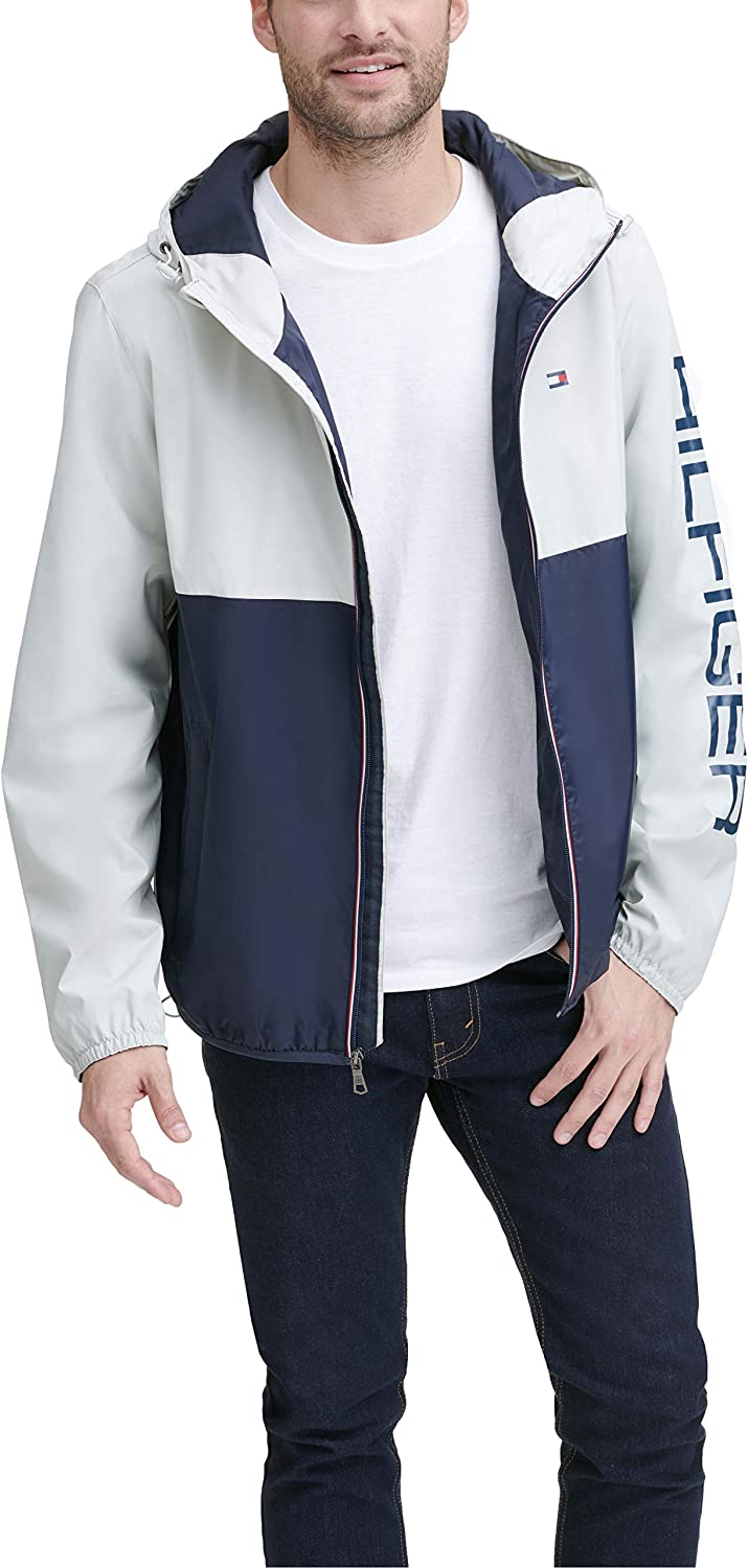 Tommy Hilfiger Men's Lightweight Active Water Resistant Hooded Rain Jacket