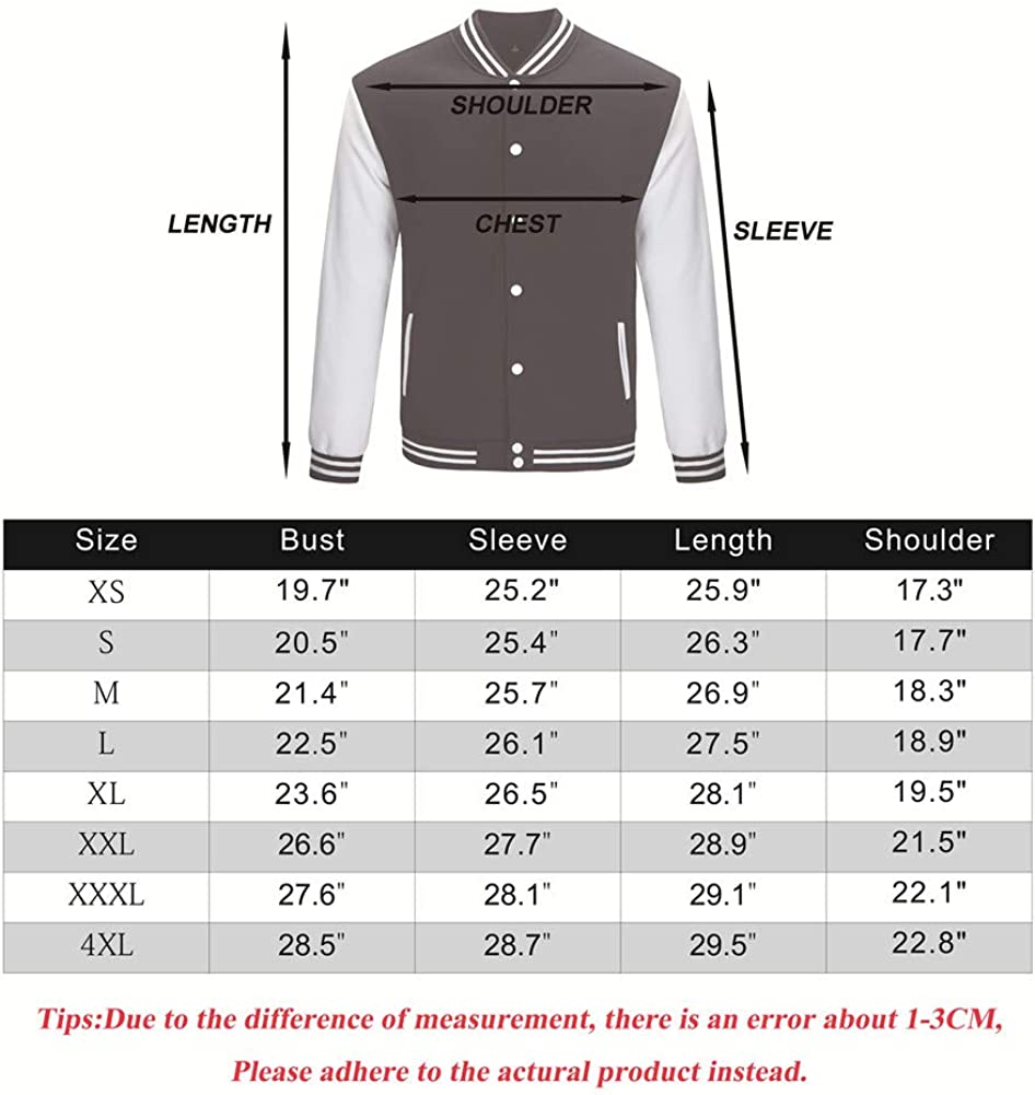 TRIFUNESS Varsity Jacket Letterman Jacket Baseball Jacket with Long Sleeve Banded Collar