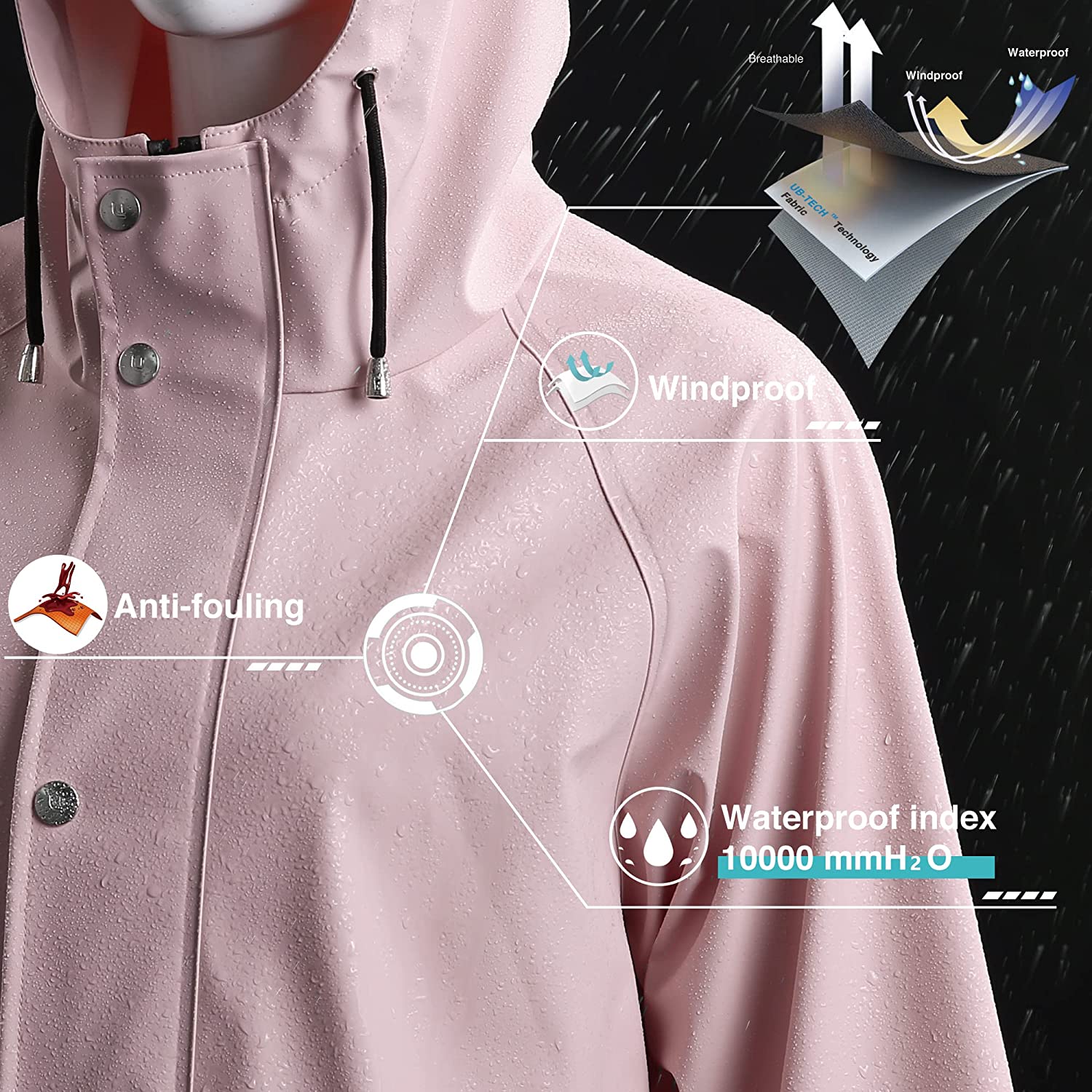 UNIQUEBELLA Raincoat for Women Waterproof Rain Jacket Hooded Outdoor Windbreaker Lightweight Trench Coat