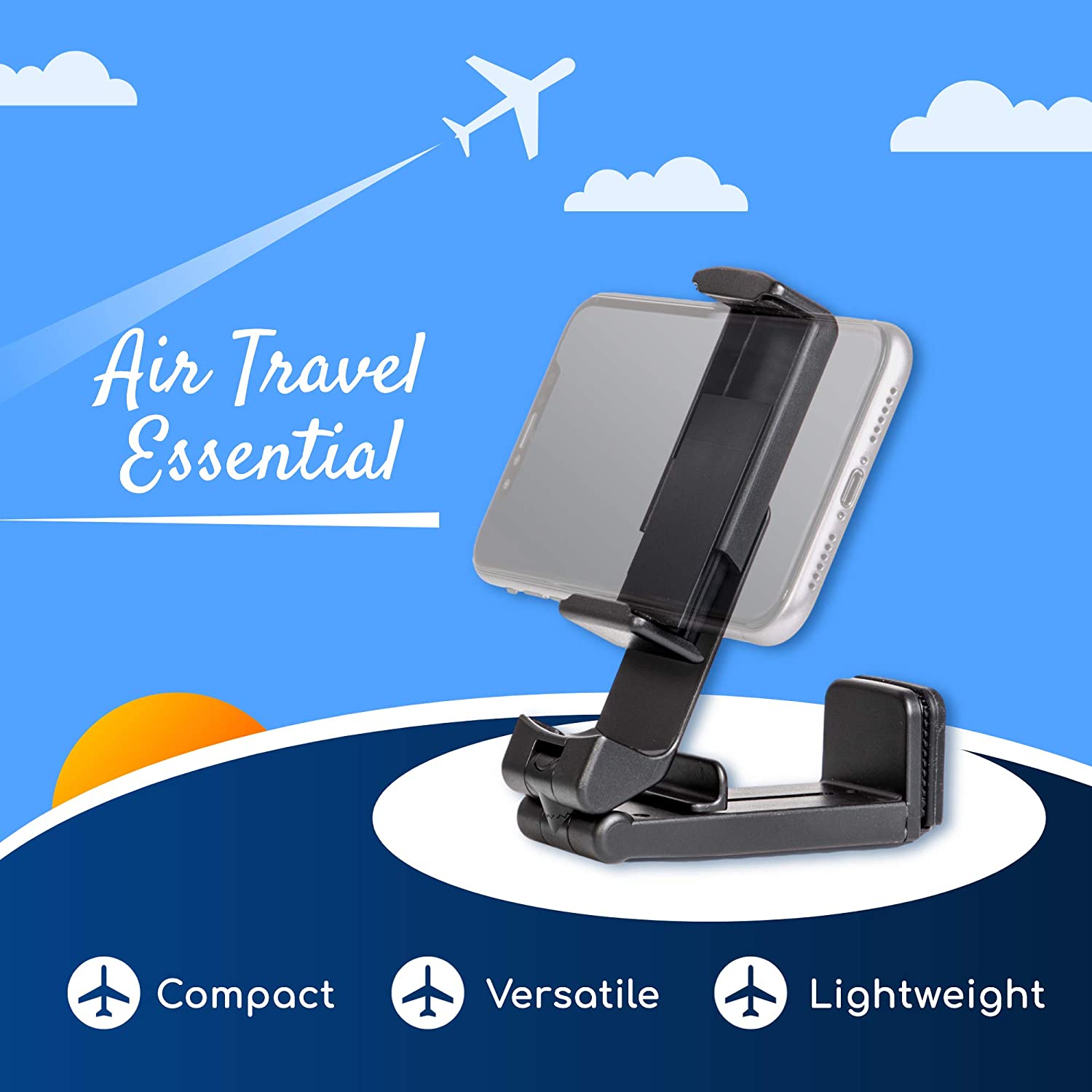 This universal cell phone clamp holder will be your best travel companion. It is light weight, compact and versatile. Use it as a phone stand, a phone clamp or a handsfree phone holder in flight, at office or just about anywhere you go.
