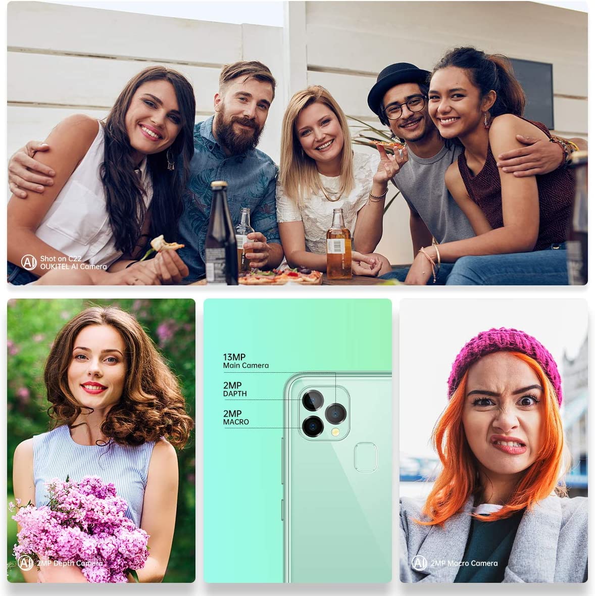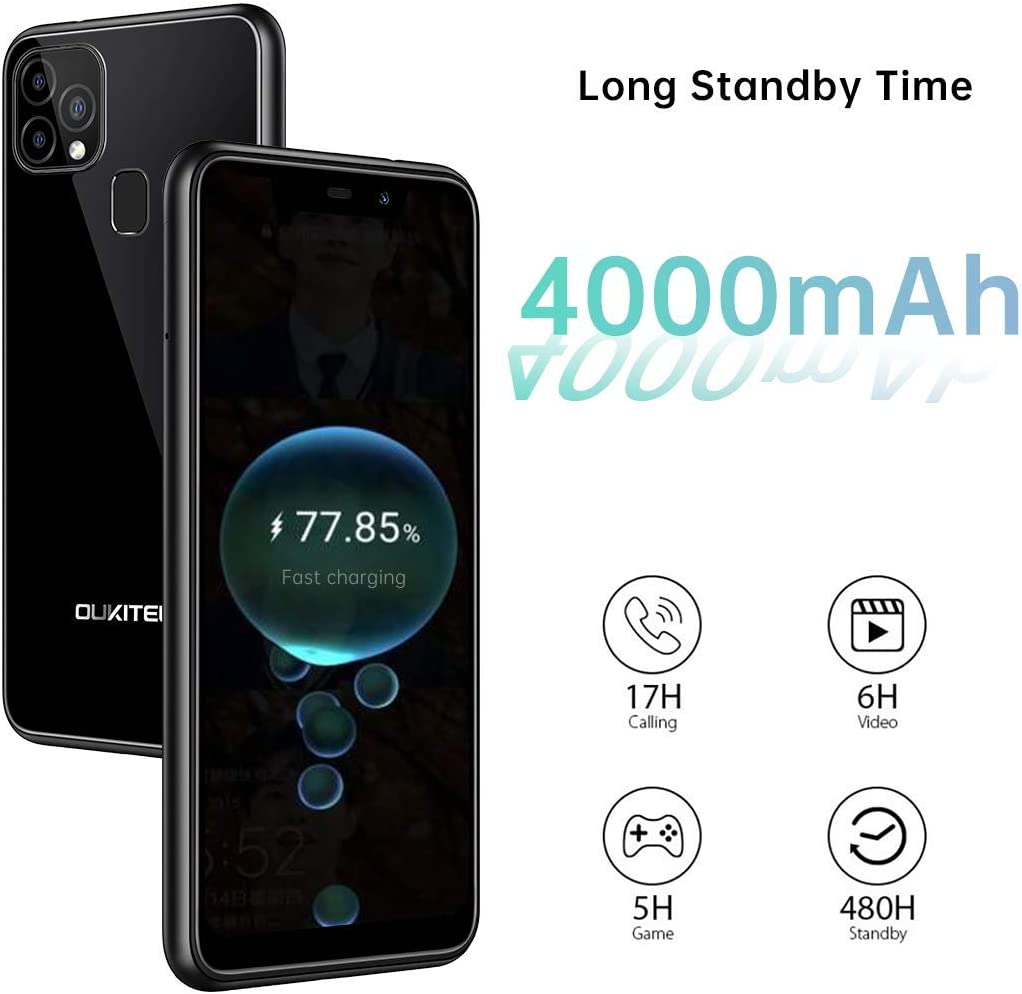 Unlocked Cell Phone, 4GB+128GB Android 10, Support T-Mobile Me​​troPCS Straight Talk, OUKITEL 2021 Dual SIM Smartphone C22 5.86 Inch HD Screen+Rear 3 Camera Face & Fingerprint ID|Black