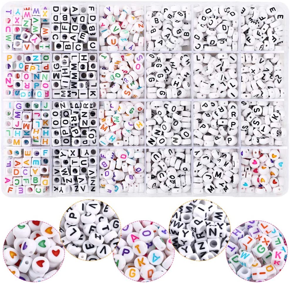 UOONY 8800pcs Beads Kit, Including 7200pcs 4mm Glass Seed Beads and 1600pcs Letter Beads for Bracelet Jewelry Making and Crafts with 20m Crystal String and 30m Elastic String