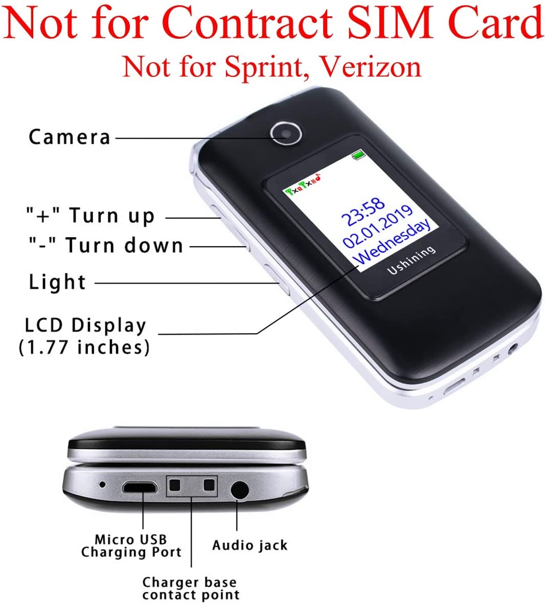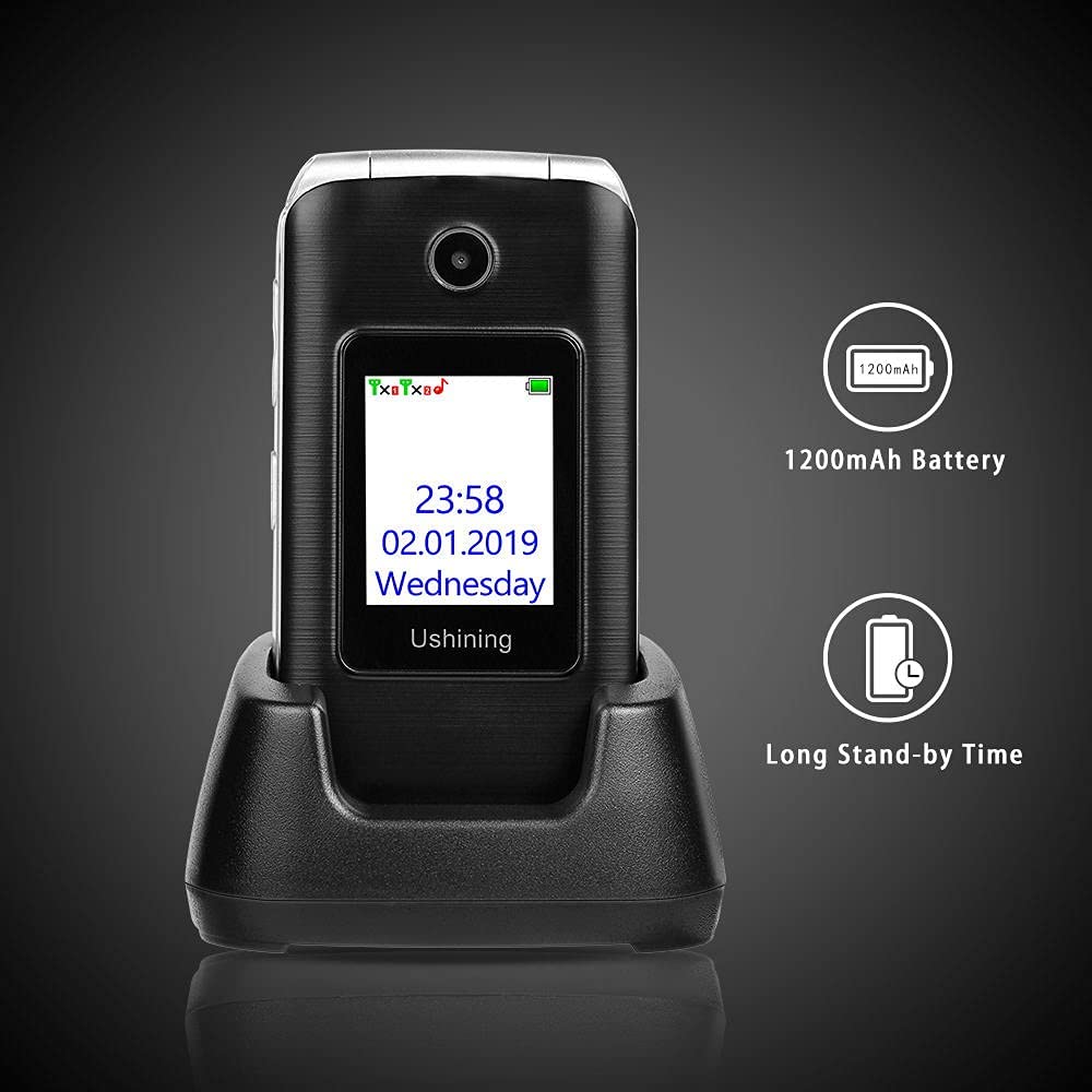 Ushining 3G Unlocked Flip Cell Phone for Senior and Kids, Easy-to-Use Big Button Cell Phone with Charging Dock, AT&T Suitable (Black)