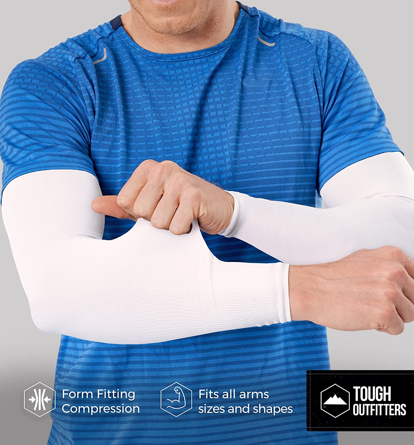 UV Sun Protection Arm Sleeves for Men & Women - UPF 50 Sports Compression Cooling Sleeve - Skin Cancer Foundation Recommended