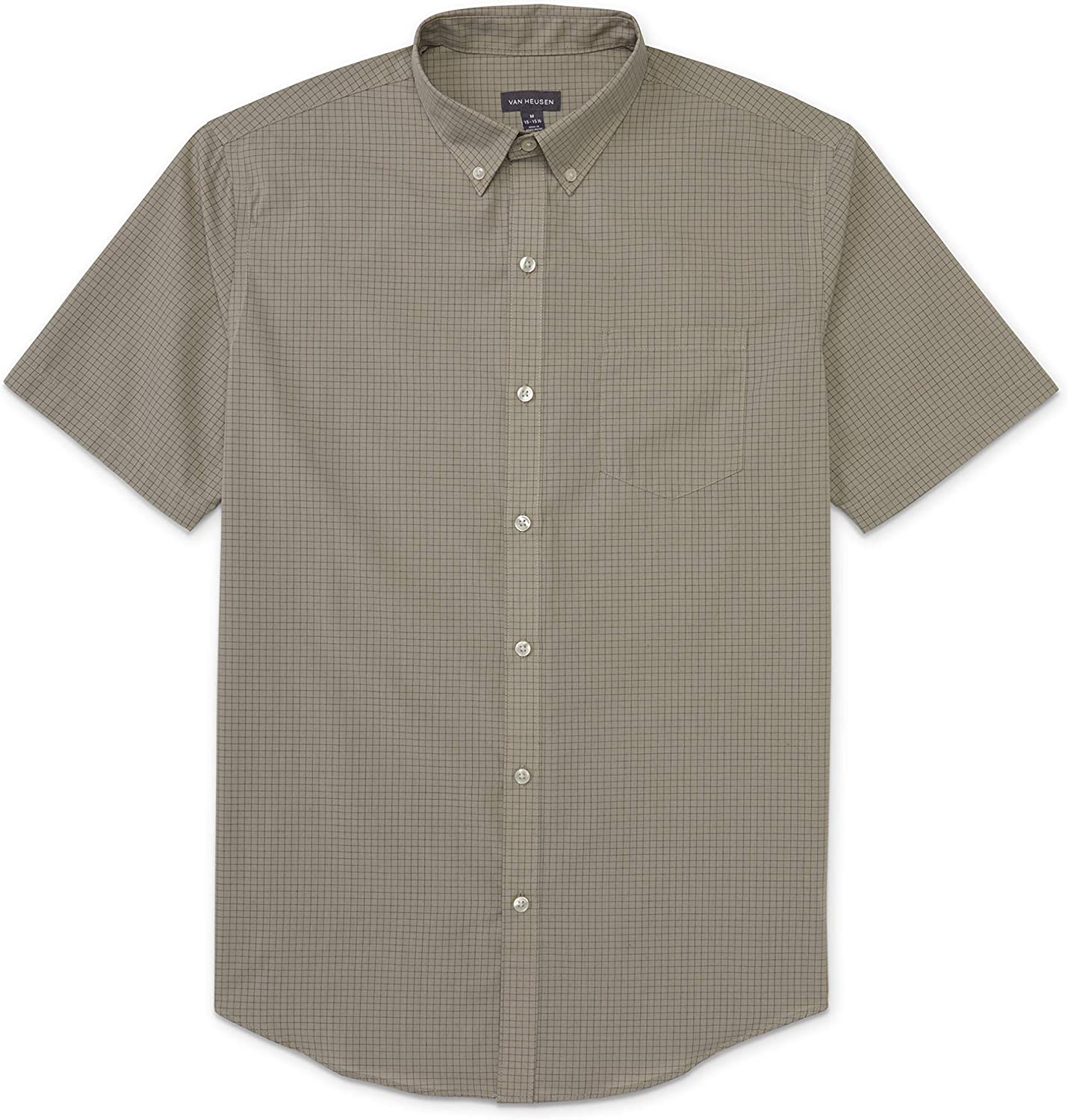 Trains, planes and automobiles are no match for this Van Heusen button down shirt. Its wrinkle-resistant finish makes it easy to move through your day with confidence and a classic pattern adds versatility to this short-sleeve style.