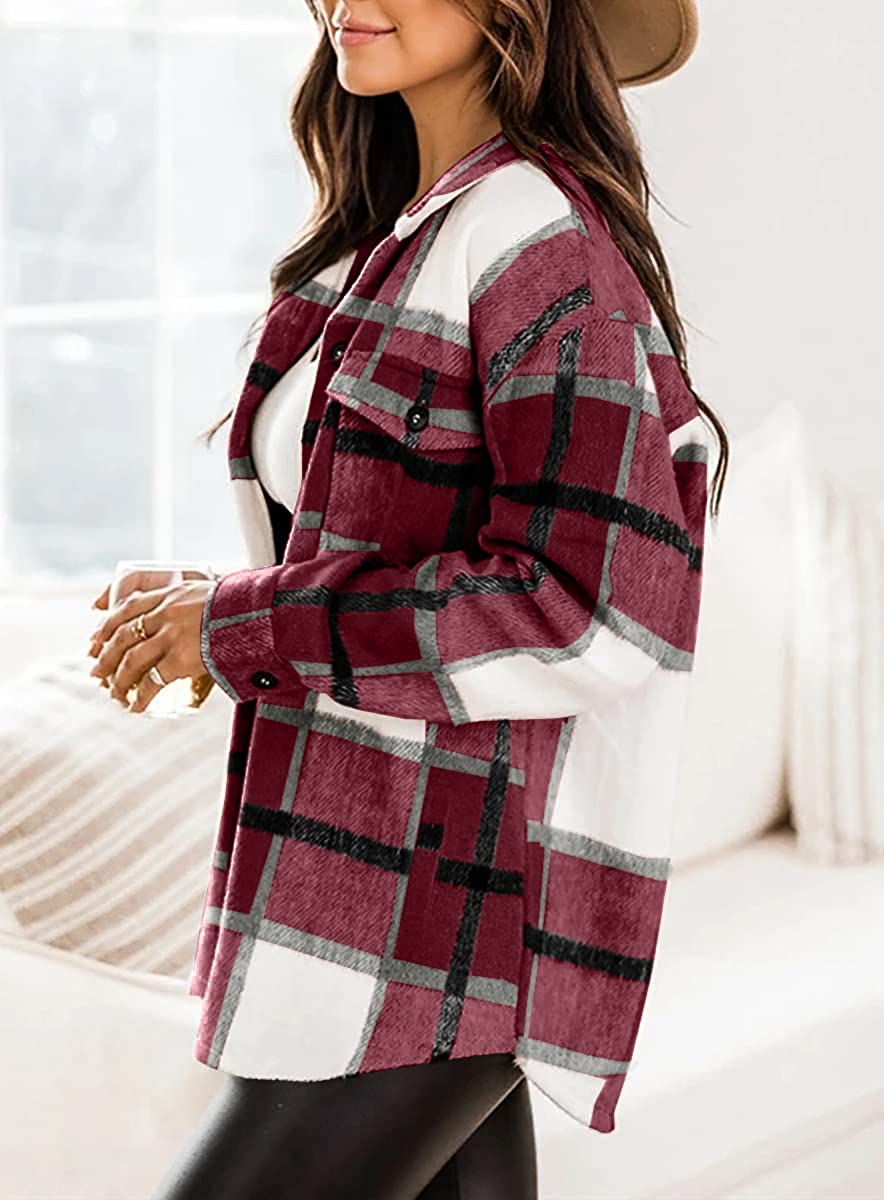 Veatzaer Womens Casual Plaid Shacket Wool Blend Button Down Long Sleeve Shirt Jacket with Pocket