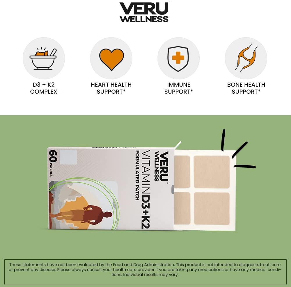 Veru Wellness D3/K2 Essential Patch - Bariatric Support Vitamins D3 K2 (60 Patches)
