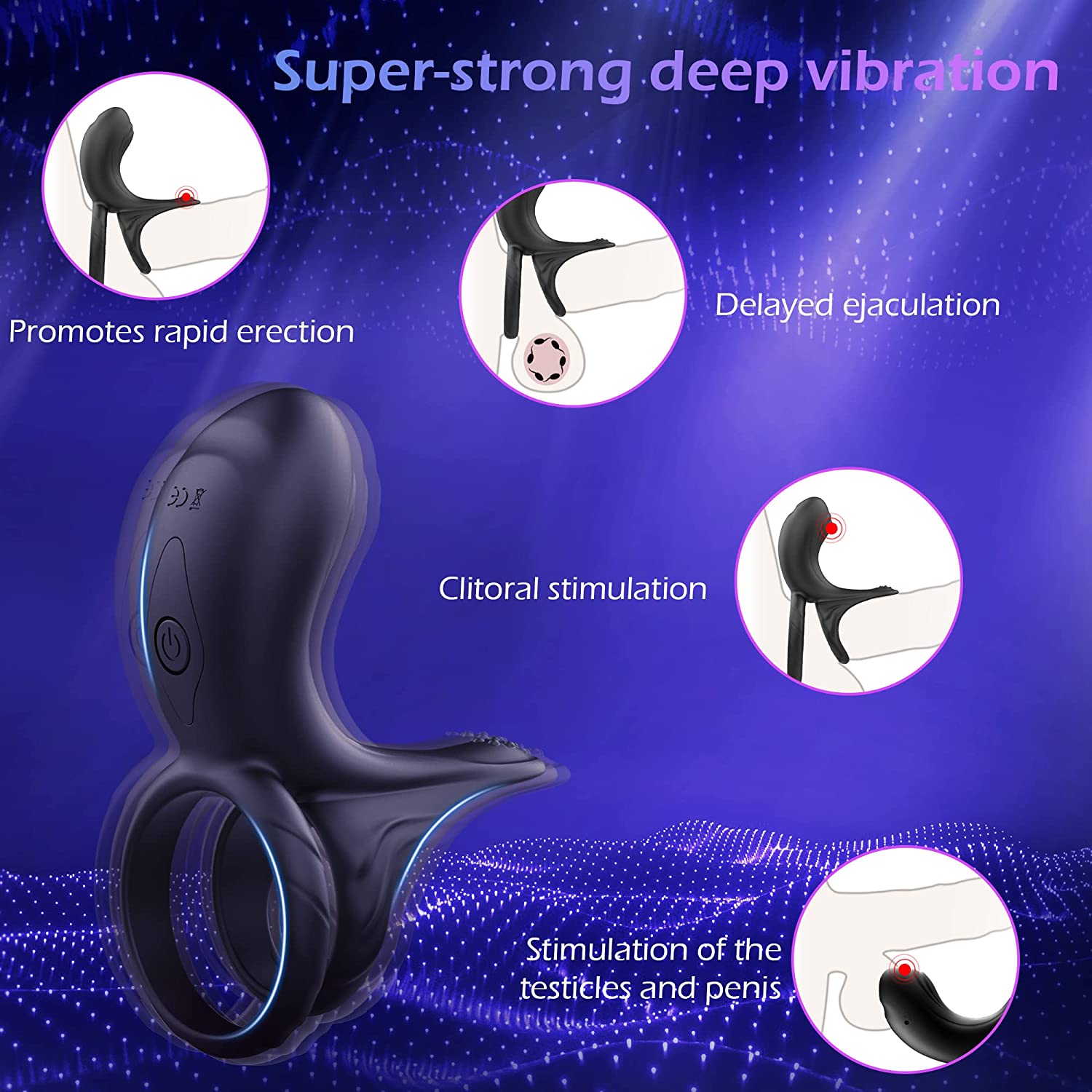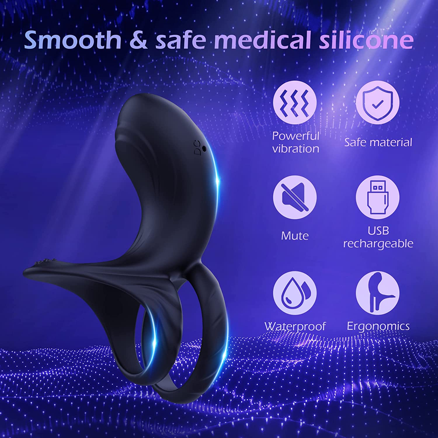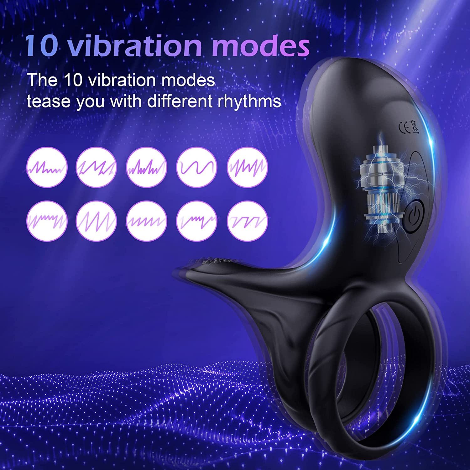 Vibrating Cock Ring, FOBONO Silicone Penis Rings with 10 Intense Vibration Modes, Double Ring Mens Vibrator for Longer Harder Stronger Erection, Improve Sexual Performance, Adult Sex Toys & Games