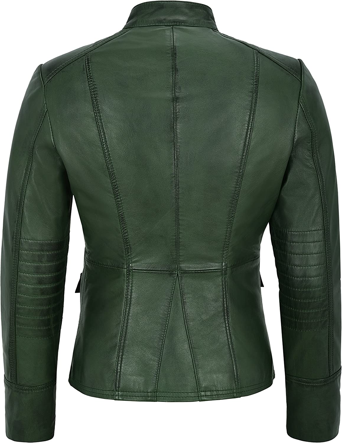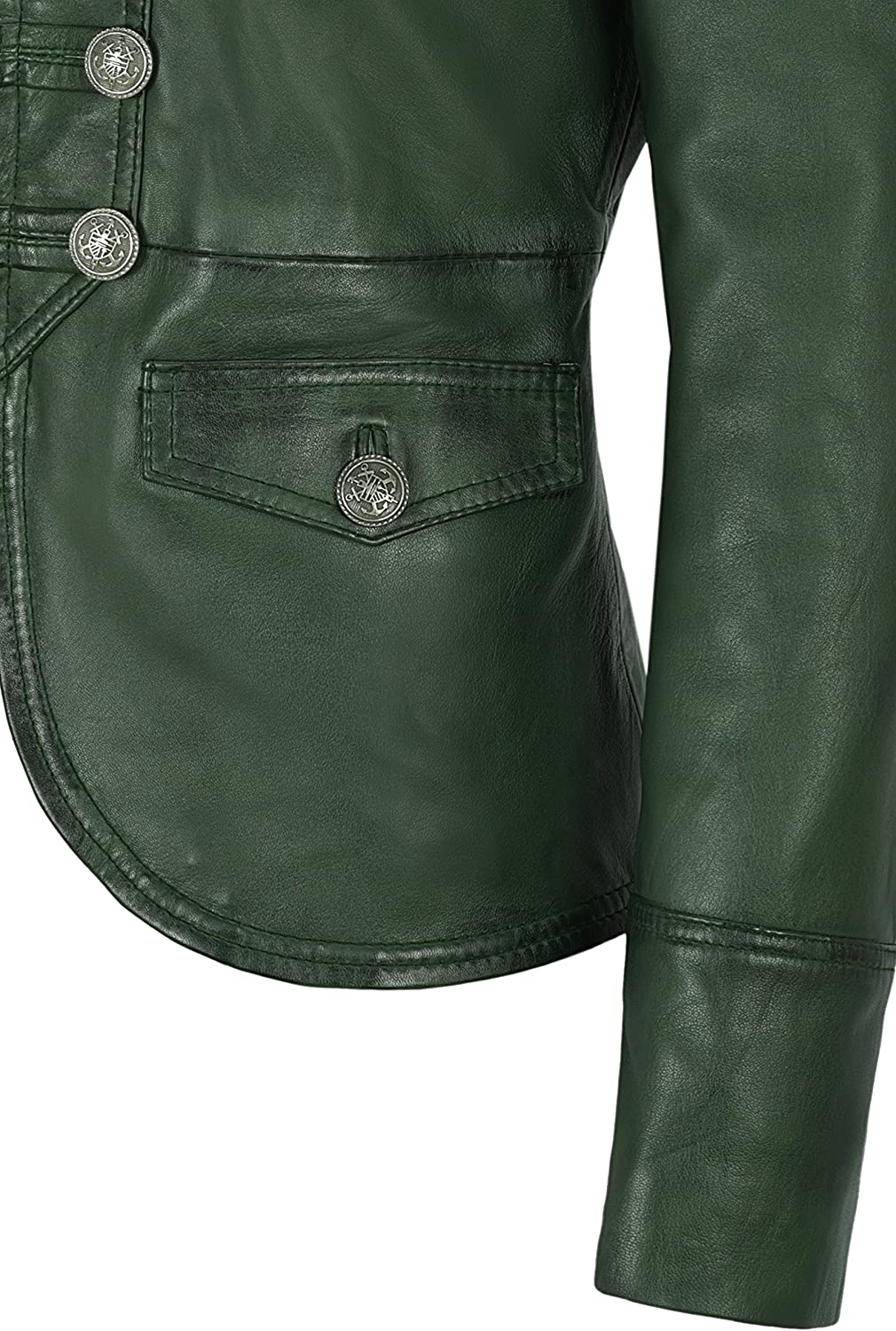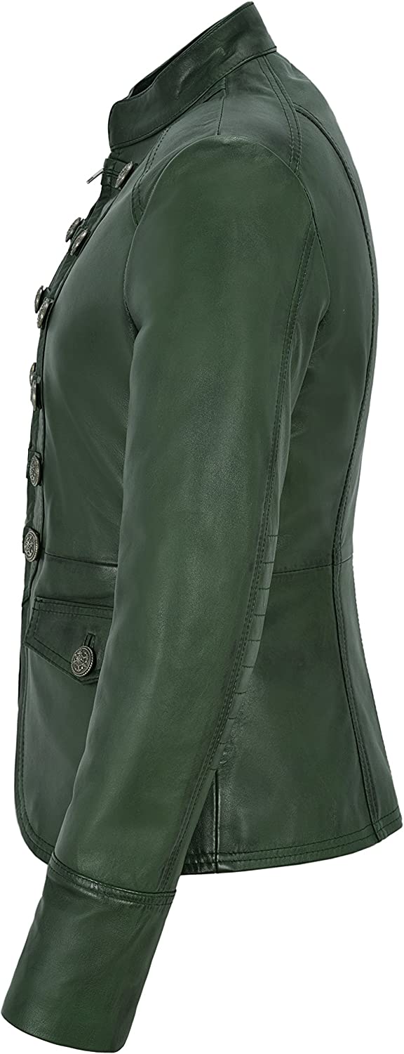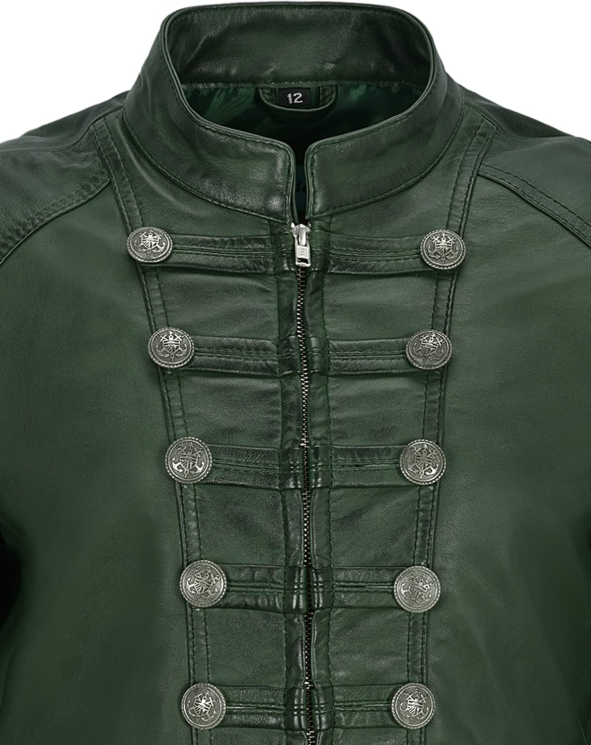 'Victory' Ladies Dark Green Military Parade Style Soft Real Nappa Leather Jacket 8976