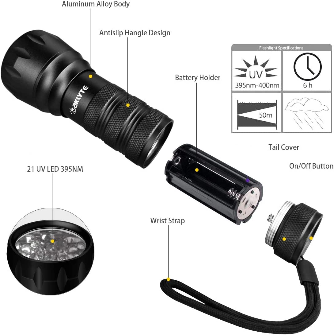 Waklyte Black Light, Mini UV Flashlight, 21 LED 395 nm Ultraviolet Blacklight Detector for Dog Urine, Pet Stains and Bed Bug (Battery Included)
