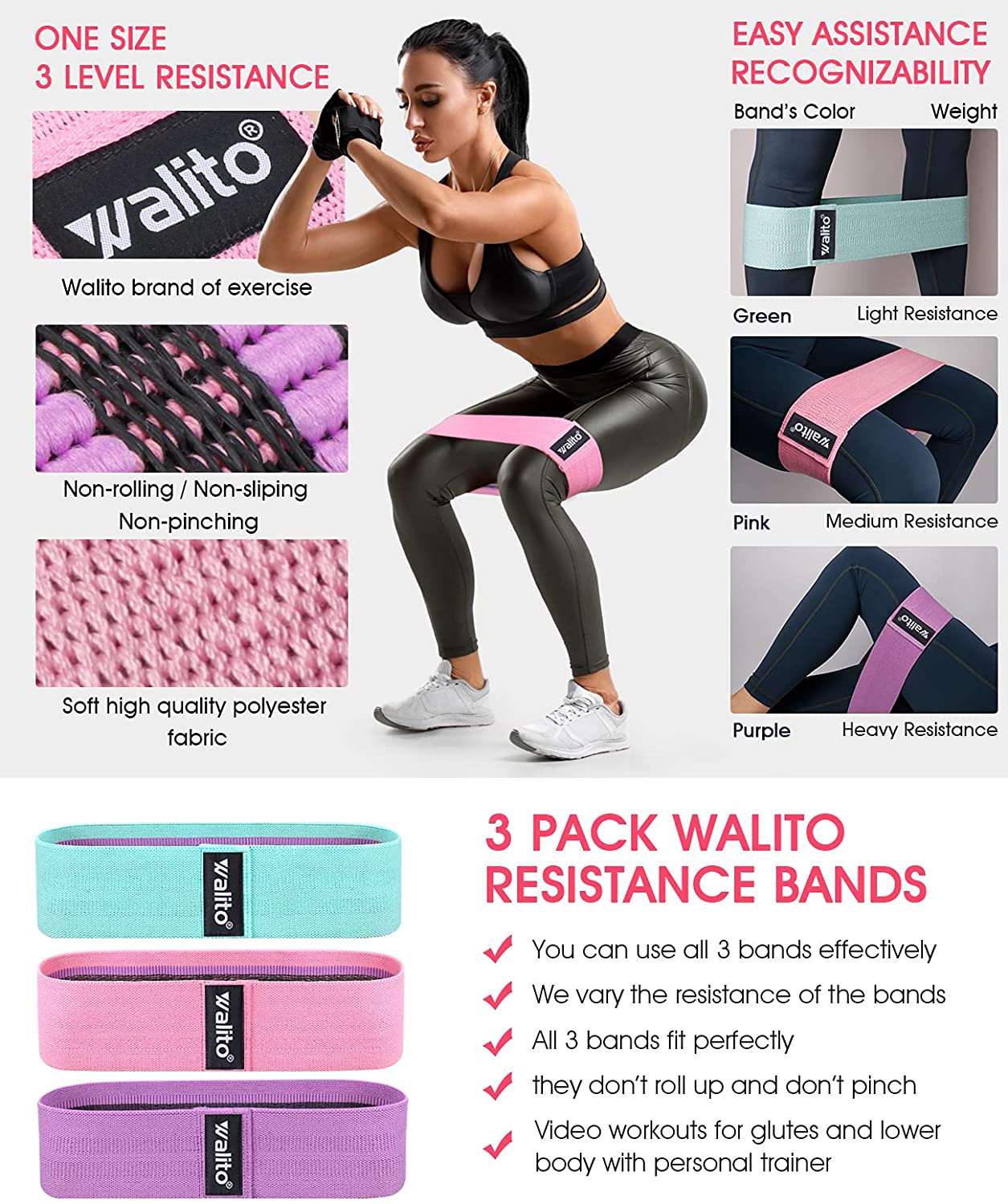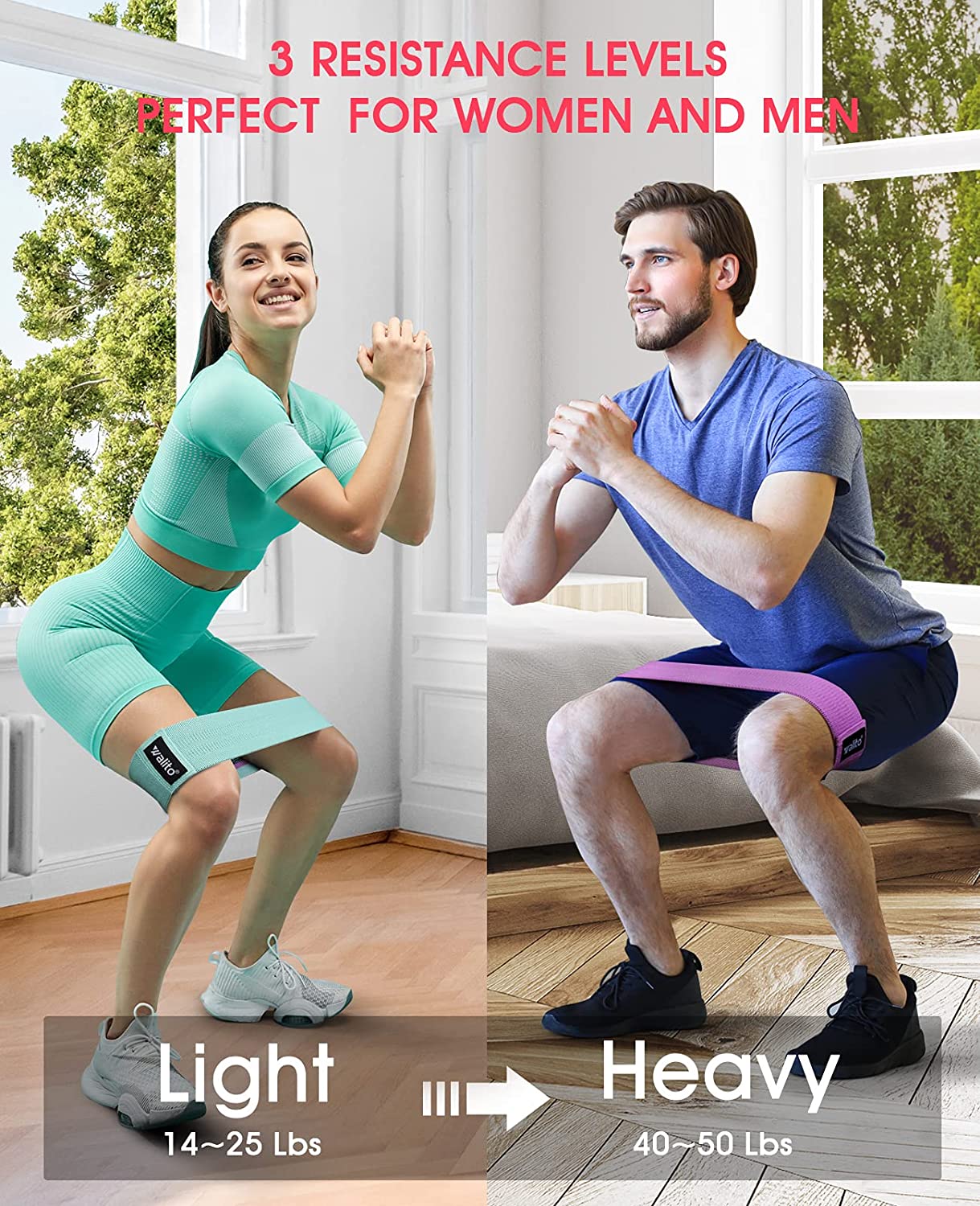 WALITO Resistance Bands for Legs and Butt, Fabric Exercise Loop Bands Yoga, Pilates, Rehab, Fitness and Home Workout, Strength Bands for Booty