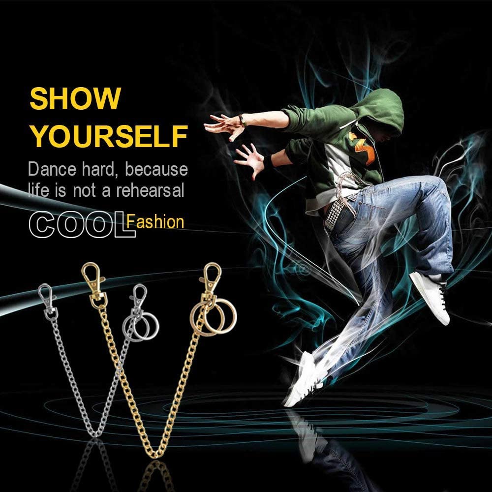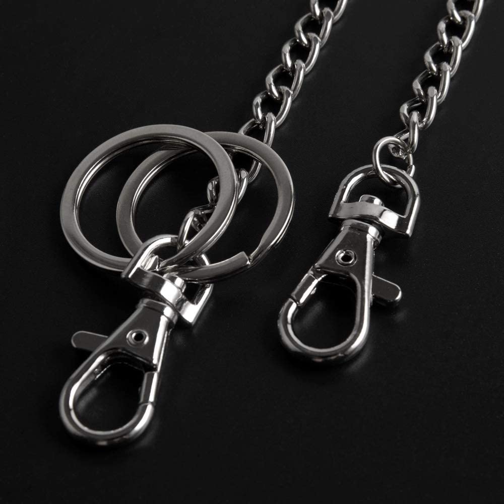Wallet Chain, Teskyer 18" Silver Keychain with Both Ends Lobster Clasps and Extra 2 Rings for Keys, Wallet, Jeans Pants, Belt Loop, Purse Handbag-Silver