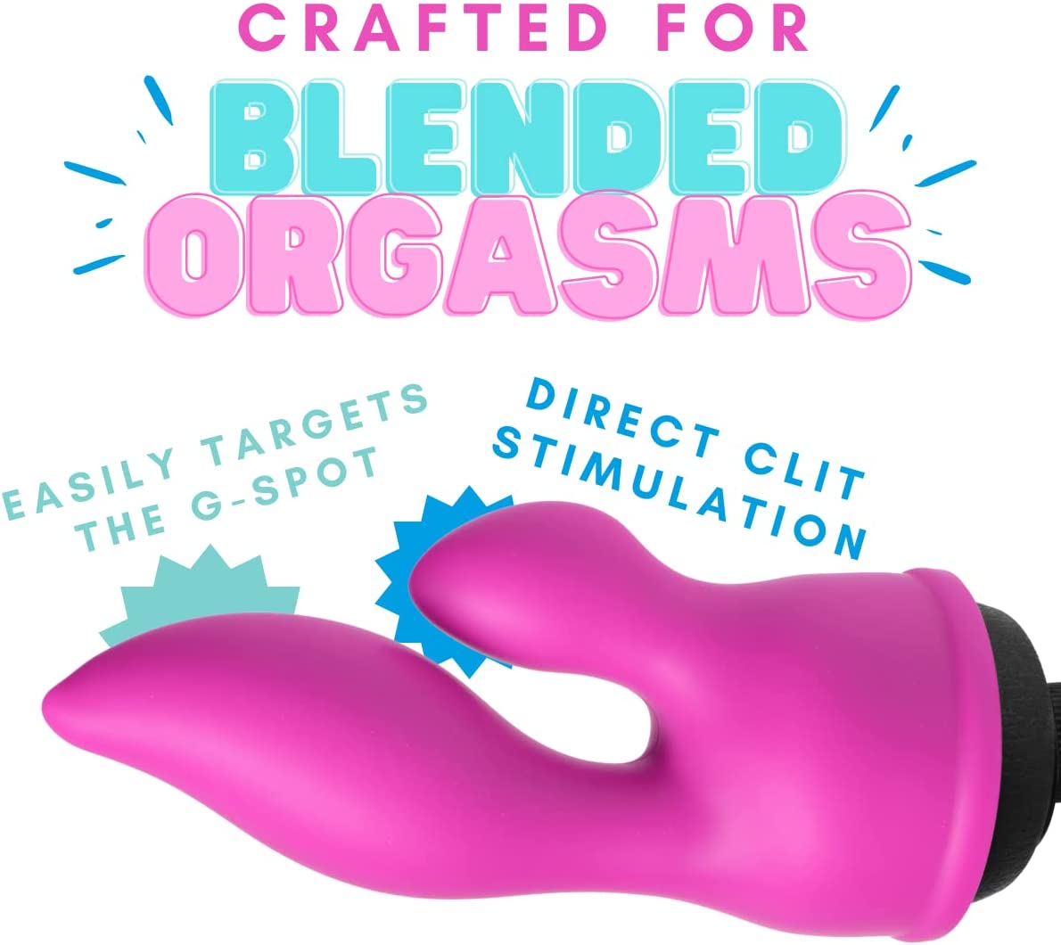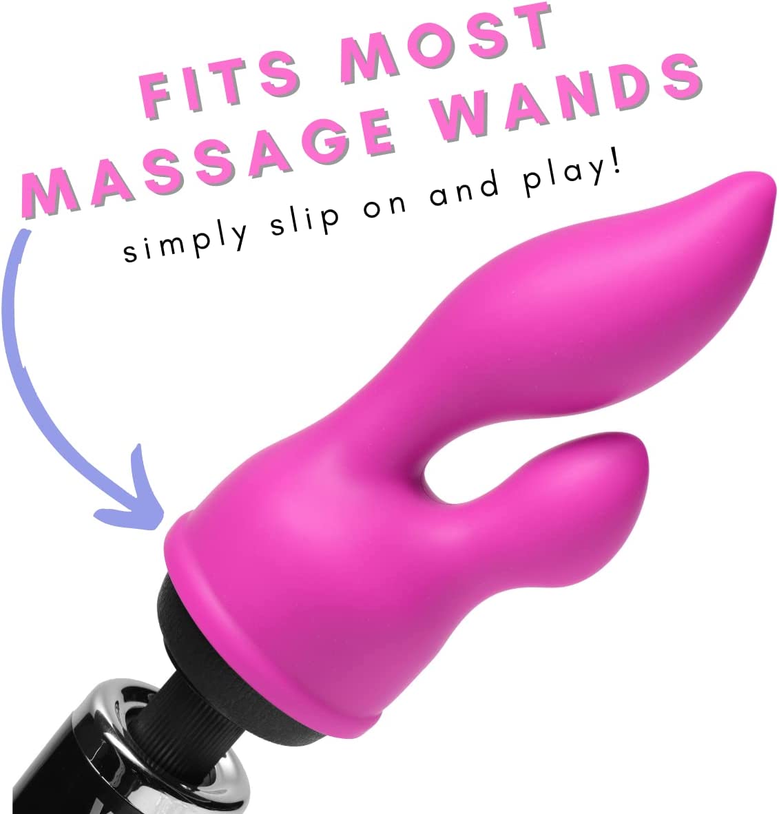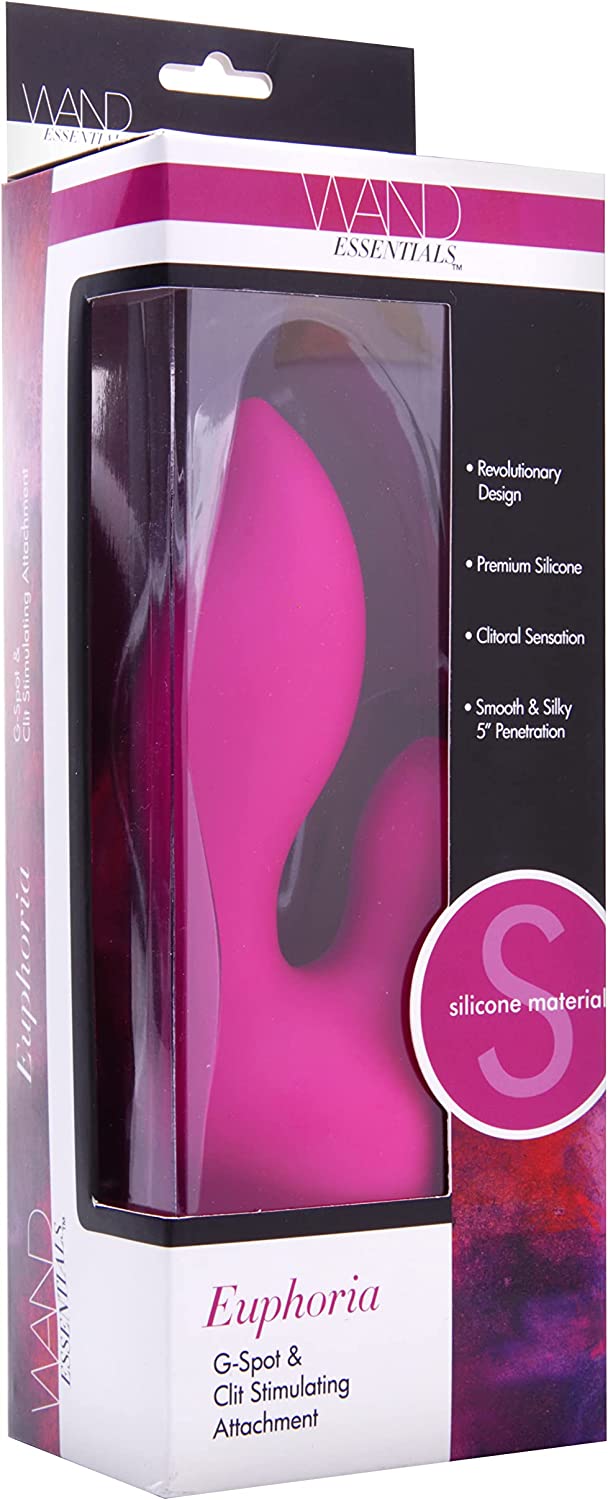 Euphoria is a velvet soft silicone wand attachment that features an ergonomically curved dual stimulation design. The larger petal is used internally, for divine penetration and direct G-spot stimulation, while the smaller petal is wonderful for clitoral stimulation. Both petals carry vibrations from your wand into the beautifully curved tips, to create a sensation of pure ecstasy. Measurements: G-spot petal: 7 inches in total length, 5 inches insertable, 1.75 inches at widest point; Clitoral petal: 2 inches in total length, opening measures 2.25 inches in diameter, opening measures 2.25 inches in diameter. Material: Silicone. Note: Fits most standard size wand massagers, including Hitachi. Wand not included.
