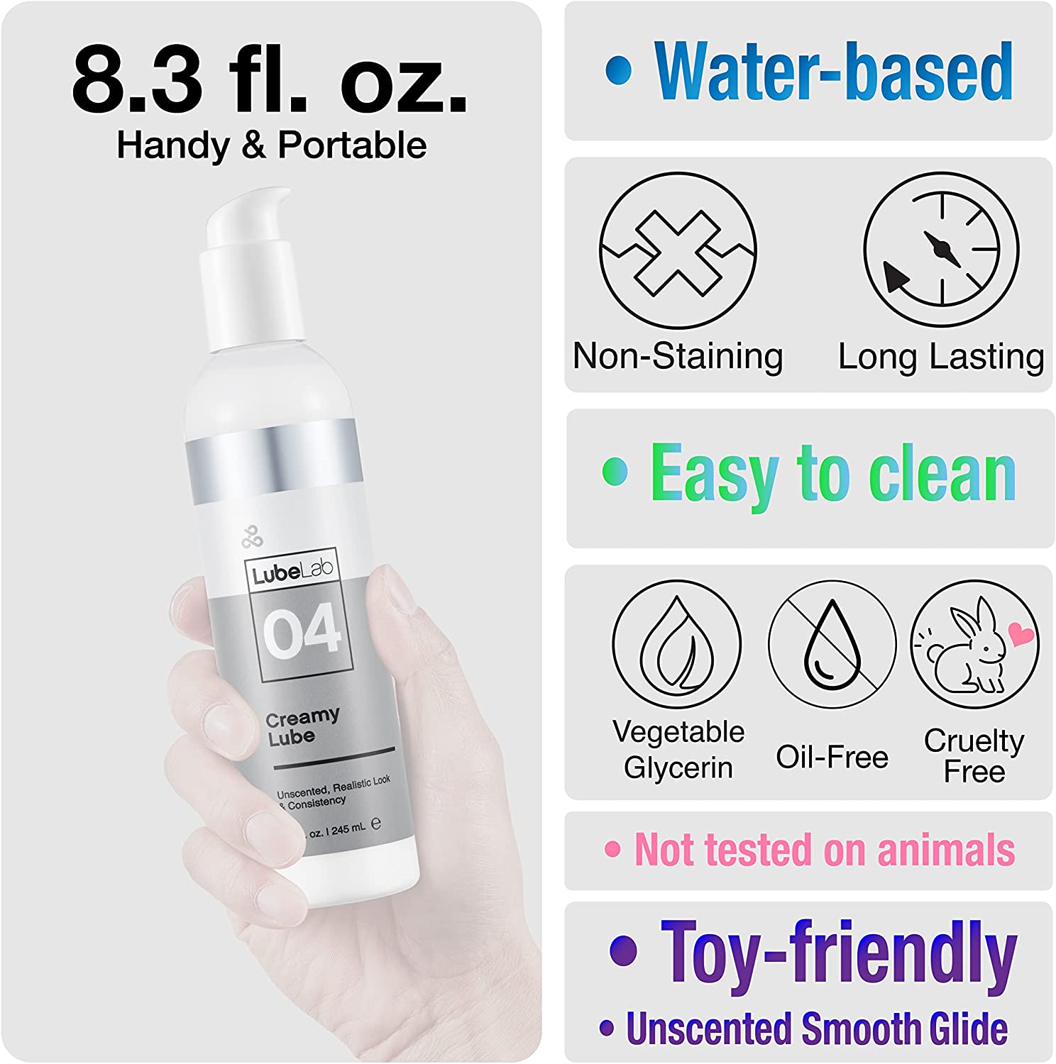 Water-Based Thick Creamy White Lube, Unscented 8.3 fl. oz Smooth Slippery Lubricant for Couples, Made in USA | Package May Vary