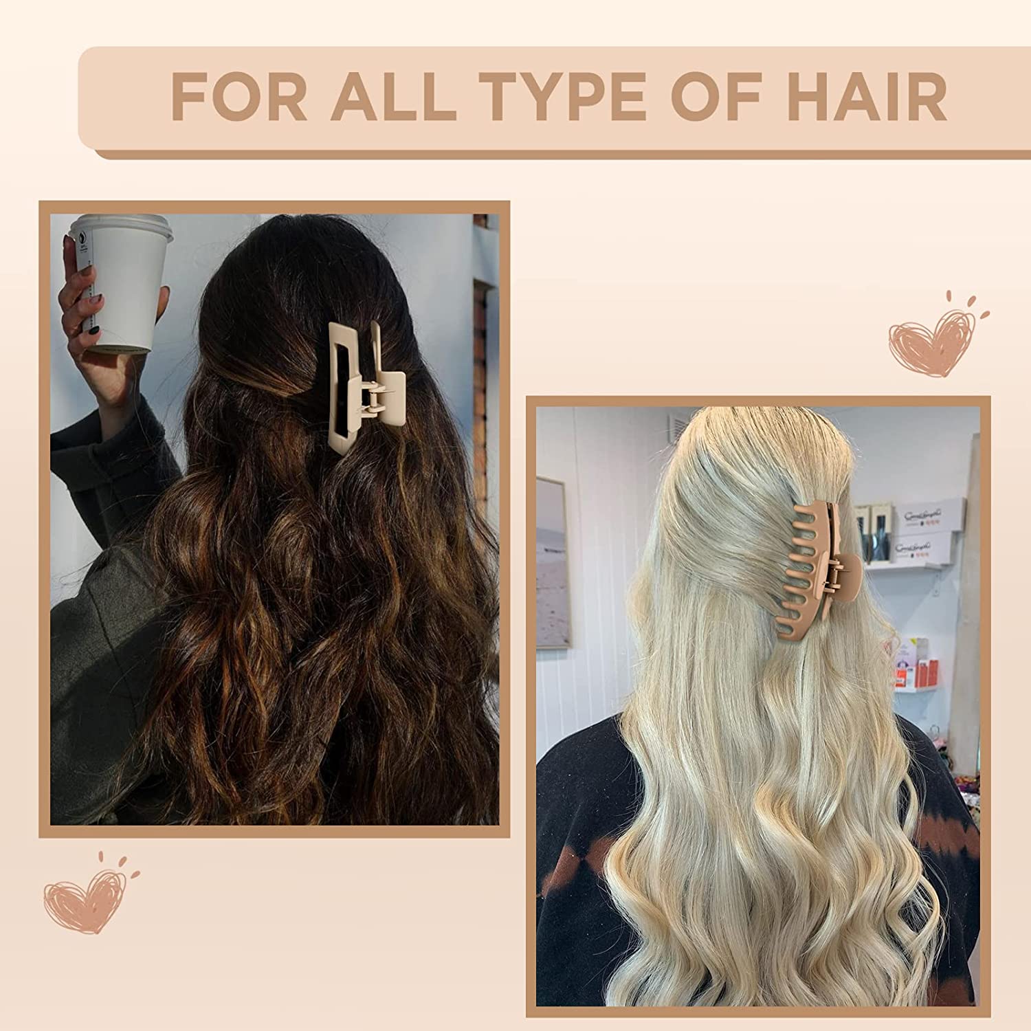 Wekin Large Hair Claw Clips, 8 Pack 4.3" Hair Clips for Women & Girls, Strong Hold Matte Claw Hair Clips for Women Thick Hair & Thin Hair, 90's Vintage Jaw Clips (Cream, Beige, Dark Brown, Black)