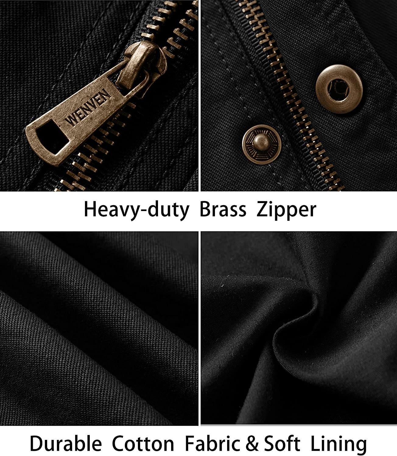 WenVen Men's Casual Canvas Cotton Military Lapel Jacket