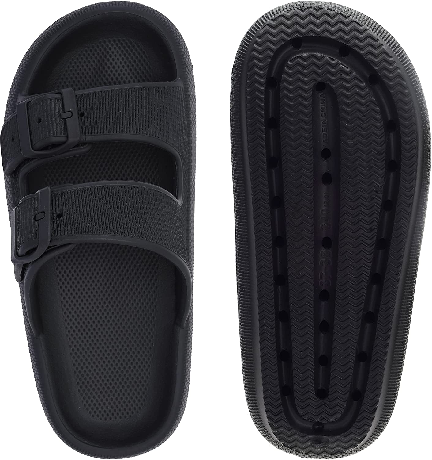 WHITIN Cloud Slides for Women Men Double Buckle Adjustable Pillow Slippers Ultra Cushion Sandals