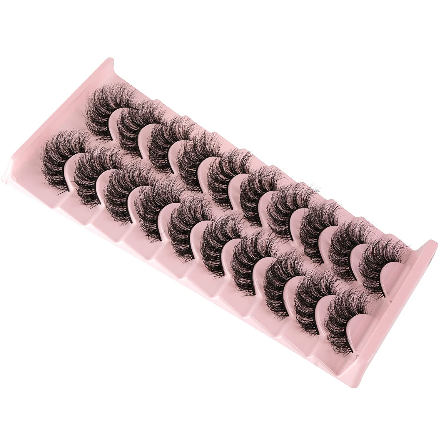 wiwoseo Eyelashes Natural Faux Mink Lashes Wispy Fluffy Curly 3D Effect Fake Eyelashes 10 Pairs Pack