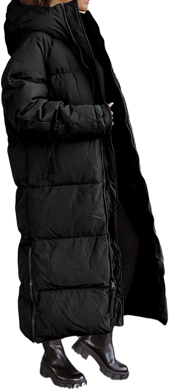 Women Long Quilted Coat Hooded Maxi Length Long Sleeve Puffer Jacket Padded Coat Winter Outerwear