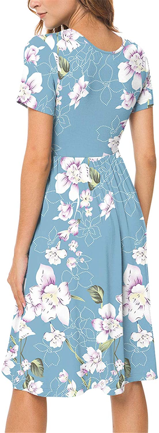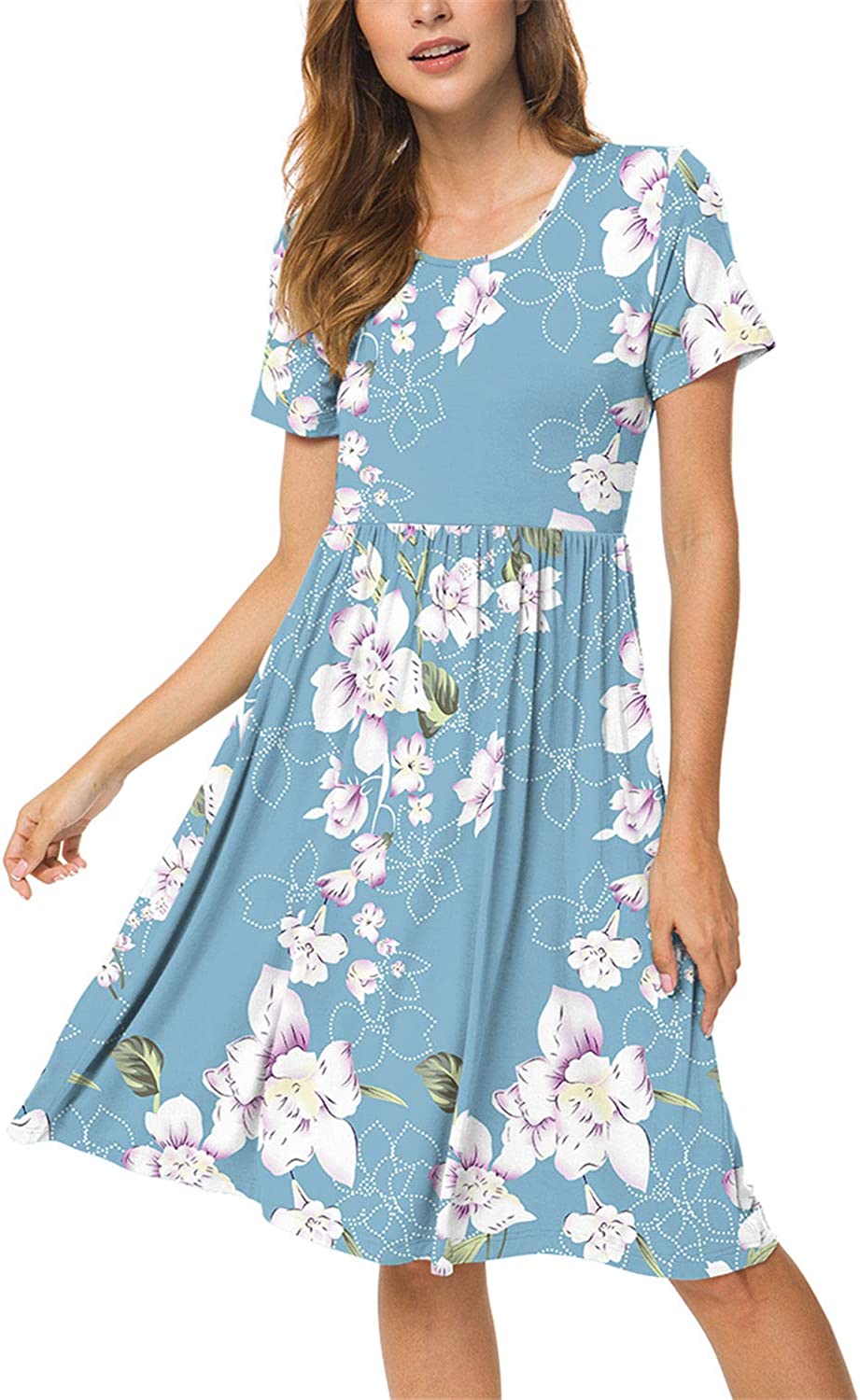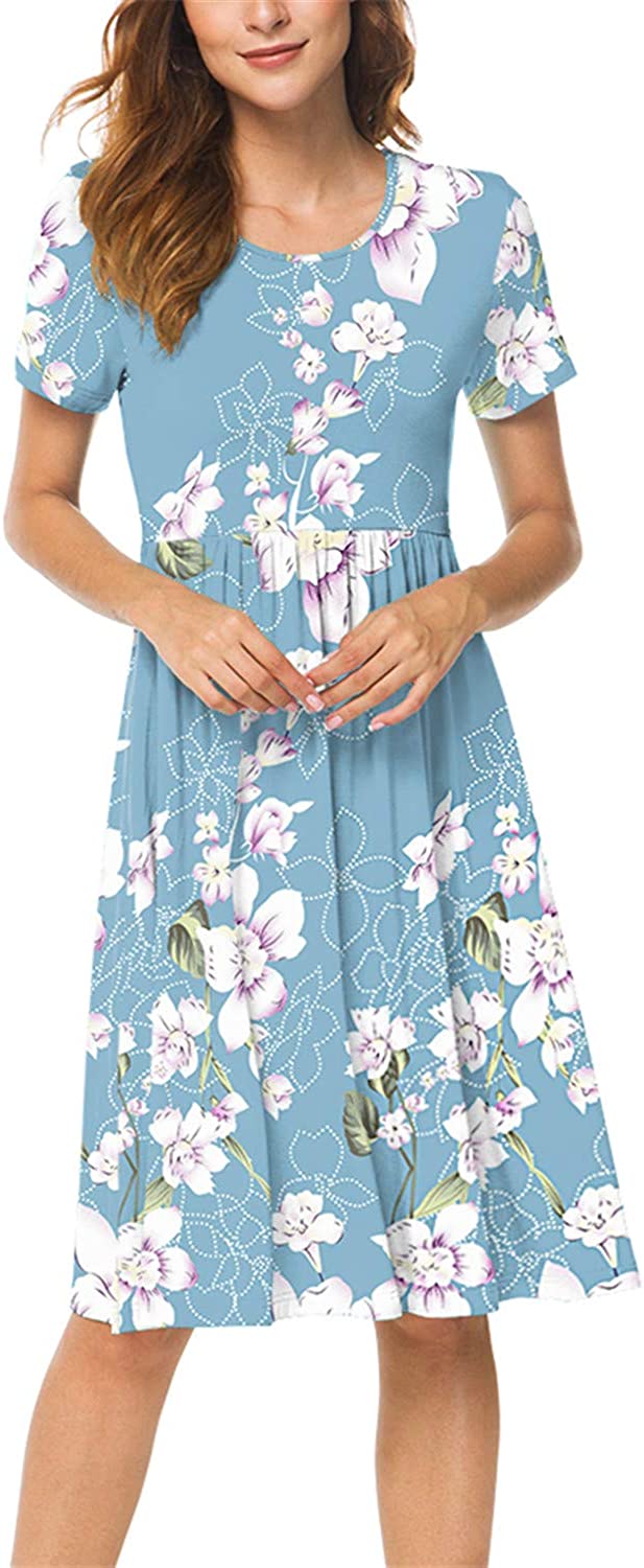 Women Summer Casual Short Sleeve Dresses Empire Waist Dress with Pockets