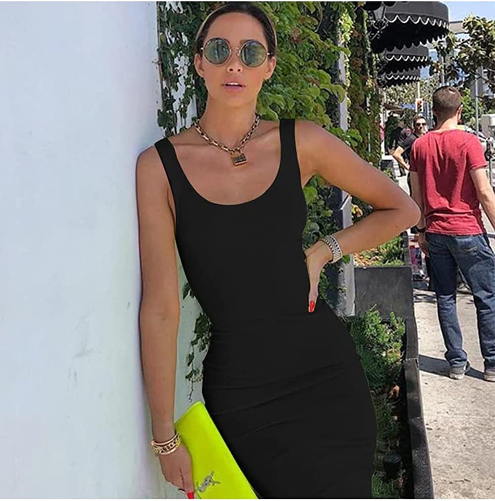Women's Basic Tank Bodycon Sleeveless Solid Casual Long Dress