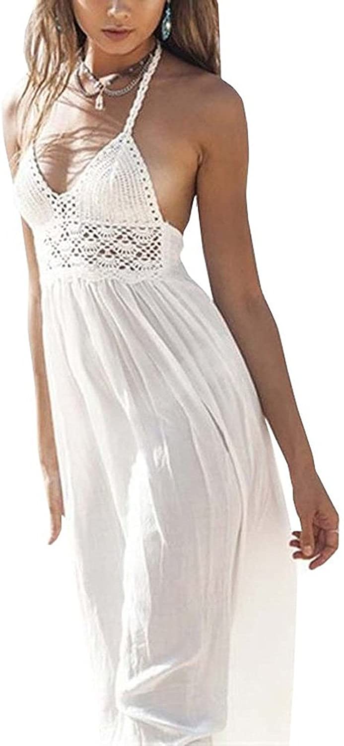Women's Beach Crochet Backless Bohemian Halter Maxi Long Dress