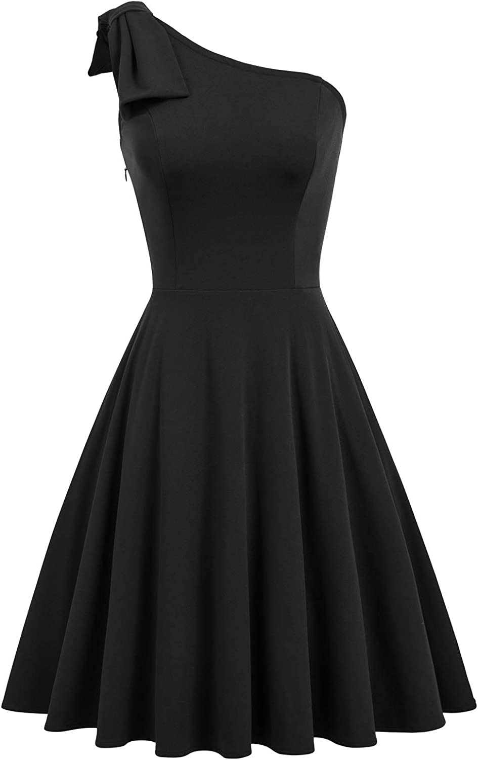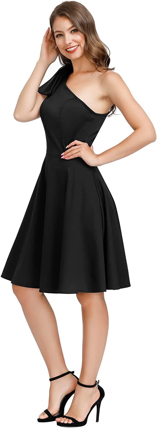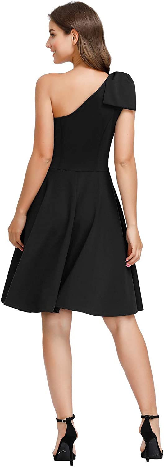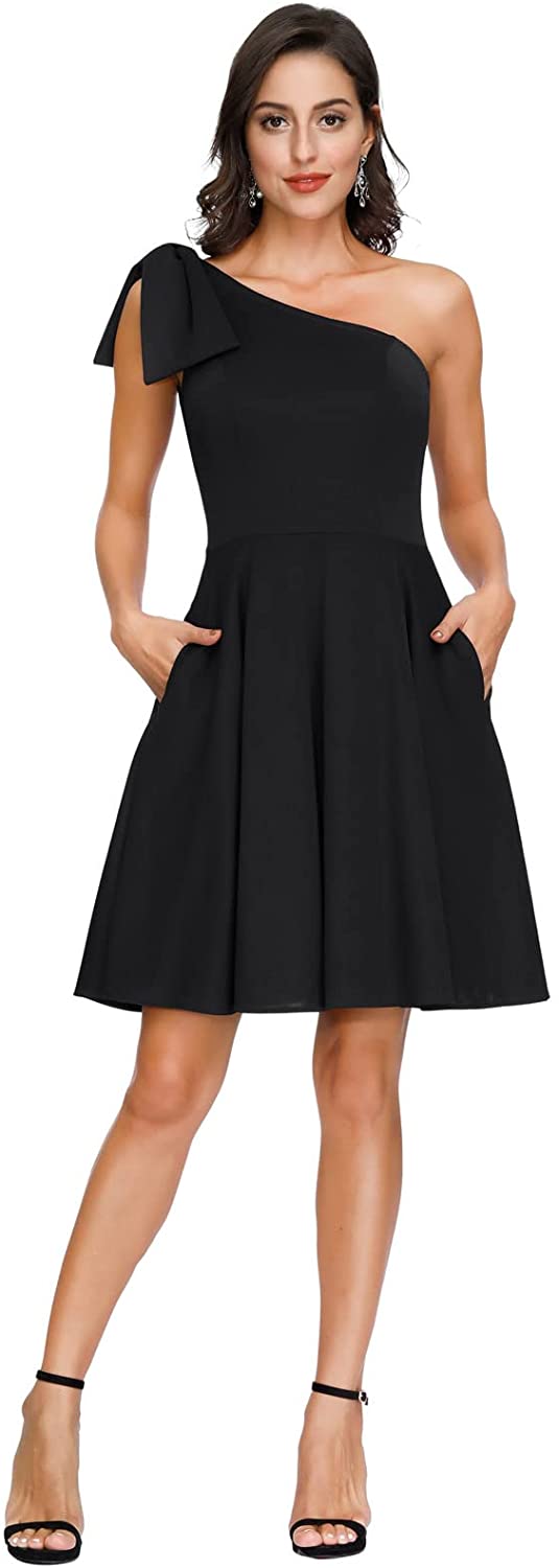 Women's Bow One Shoulder Dress with Pockets A-line Cocktail Party Dress